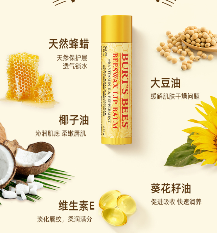 保湿润泽、淡化唇纹、口红打底。天然润滑、养出嘭嘭果冻唇,天然成分,不油不粘发,上嘴超安心。