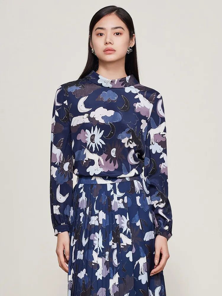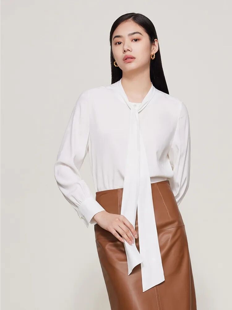 ▲桑蚕丝提花飘带领衬衫¥2190,折后价¥2080