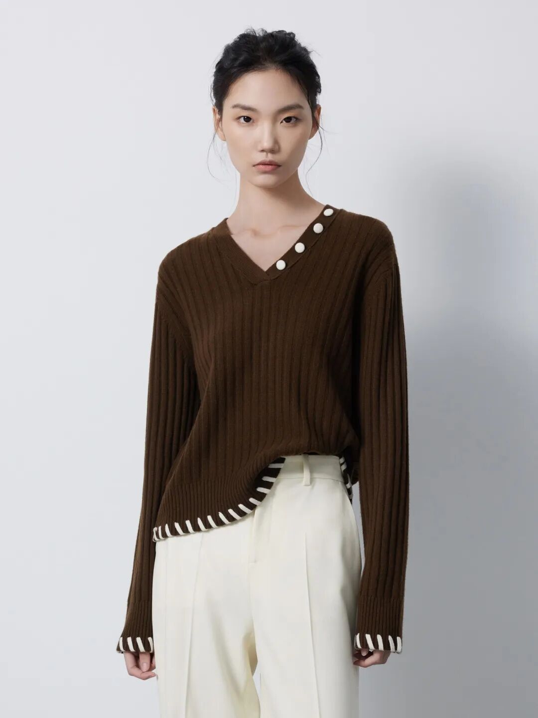 ▲初绒V领抽条羊绒衫¥3990,折后价¥3790