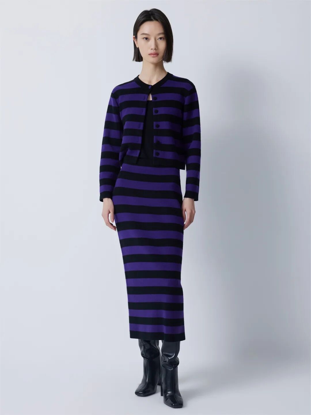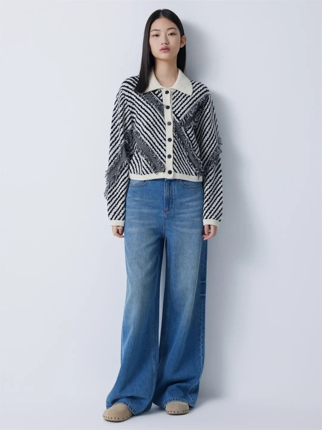 ▲圆领条纹双提开衫¥2290,折后价¥2175