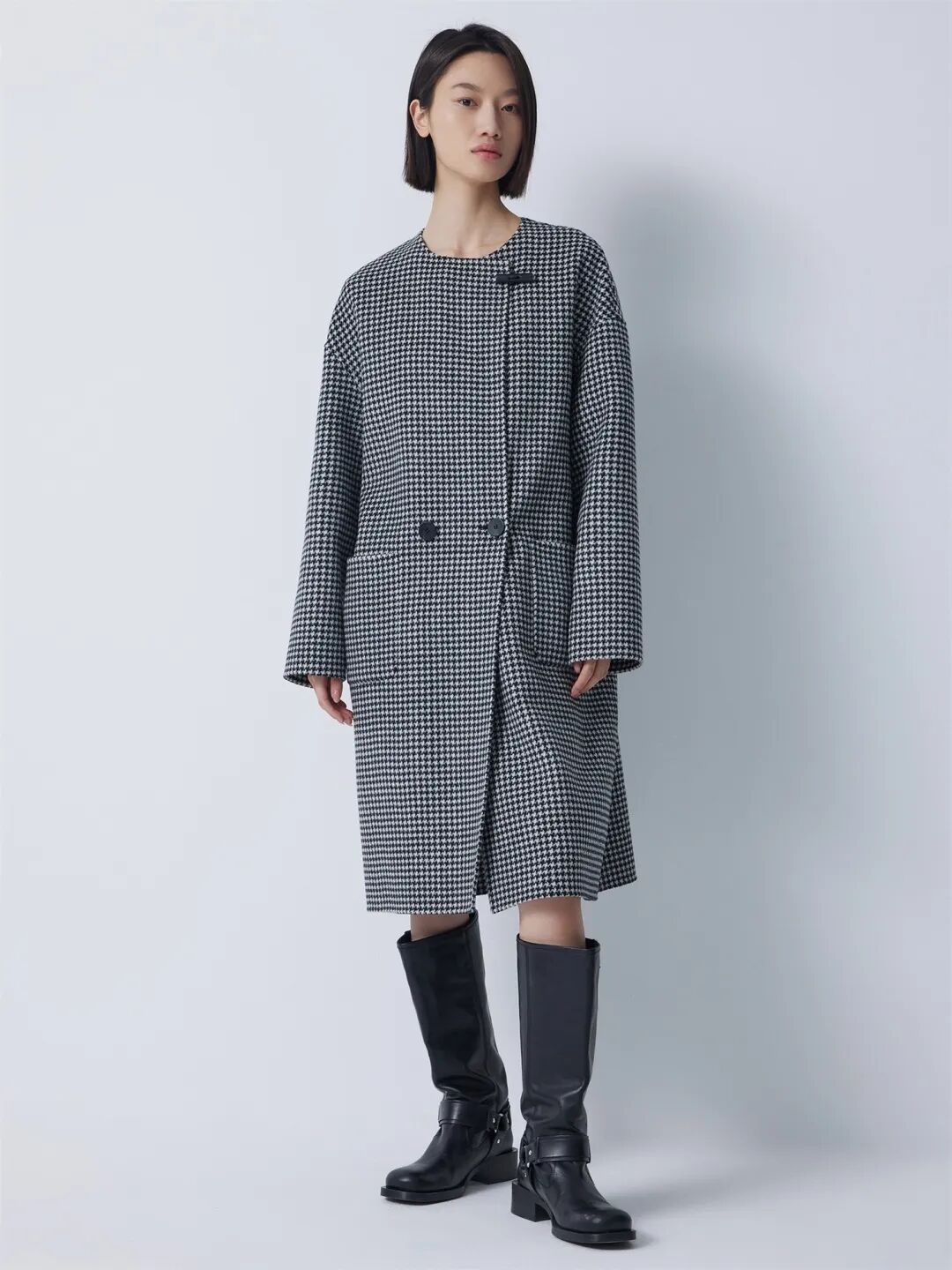 ▲法兰绒黑白格纹直筒小脚裤¥1990,折后价¥1890
