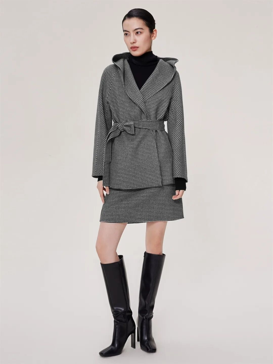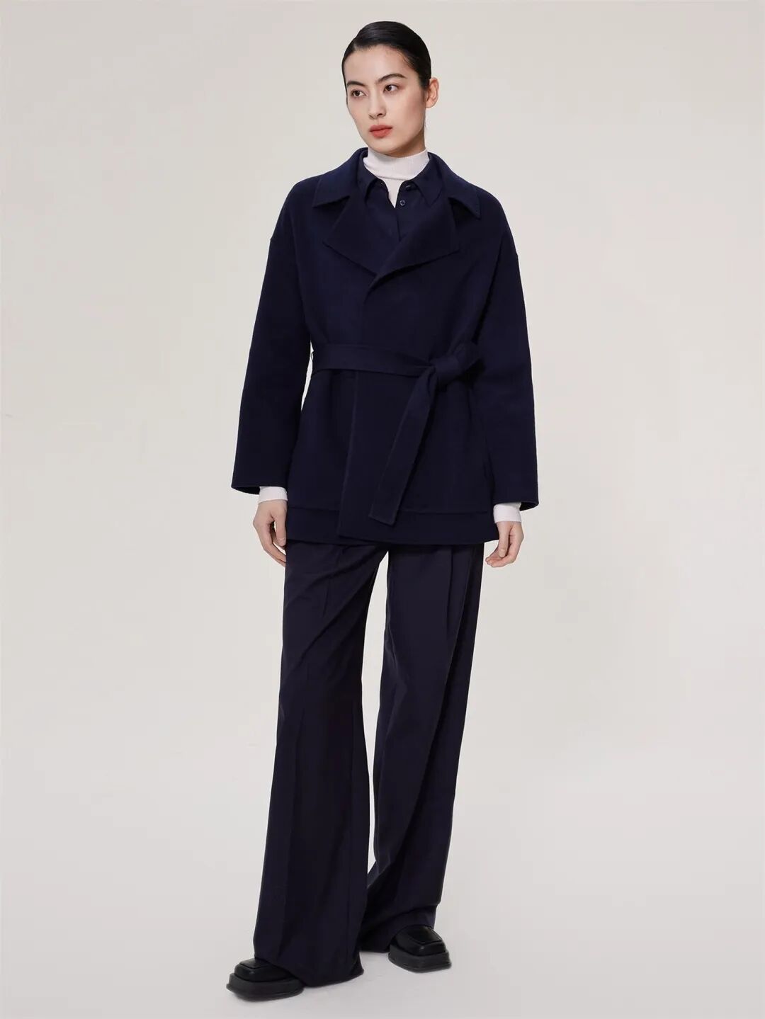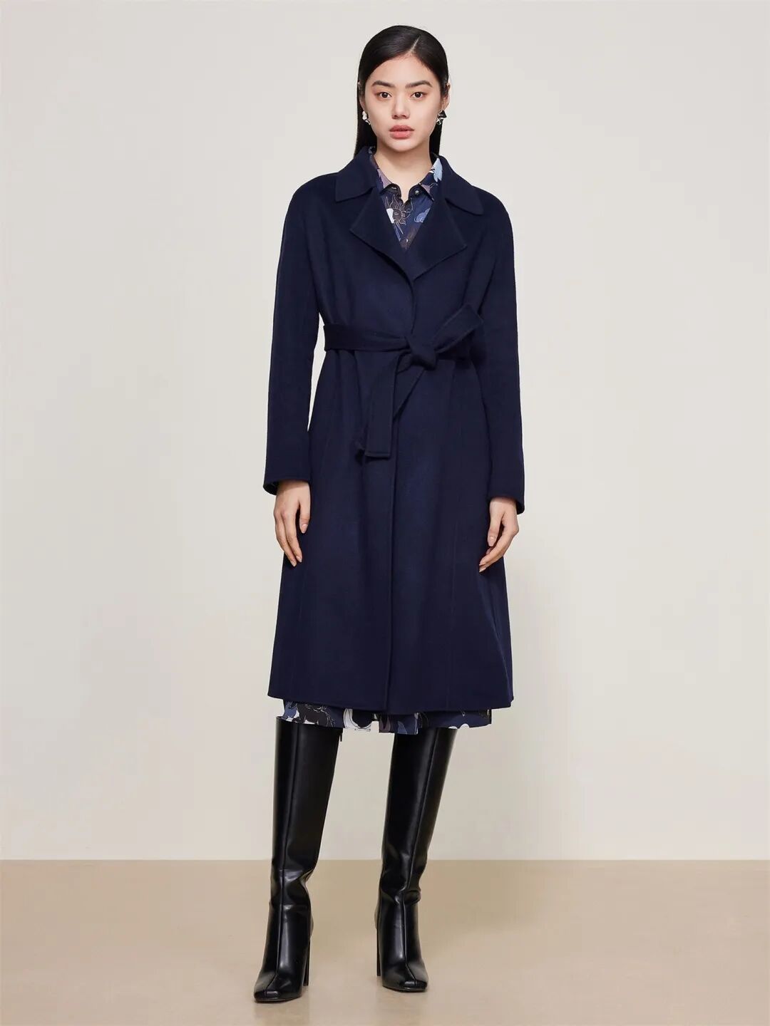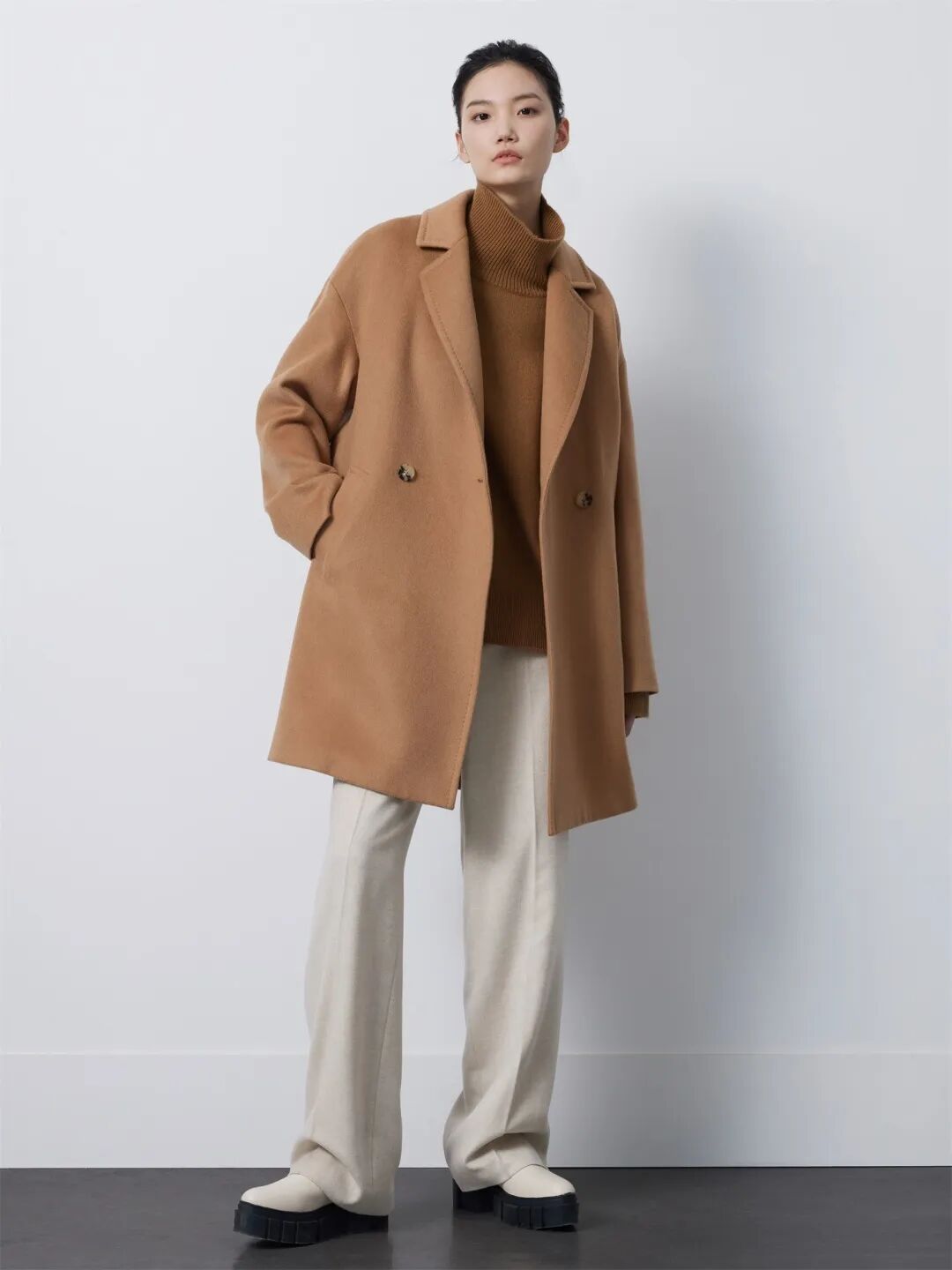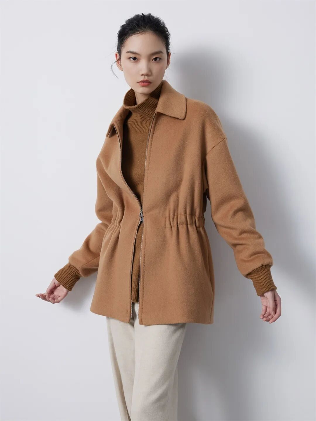 ▲驼绒羊绒混纺腰部抽绳外套¥7690,折后价¥7305