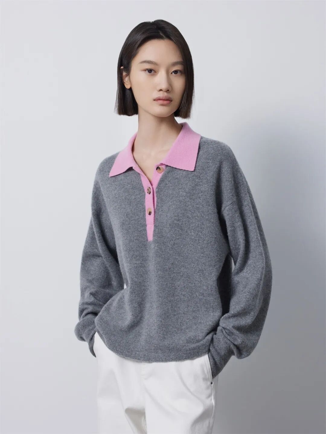 ▲撞色POLO领羊绒套衫¥2990,折后价 ¥2840
