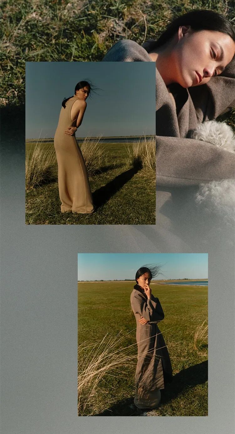 灵感在RUOHAN与ERDOS工厂的首次接触中发生,在原始、重组、秩序、纯净的过程中完成了与不同阶段羊绒的四次会面。在草原上伫立的工厂,隐含着的是人与羊绒的和谐循环。