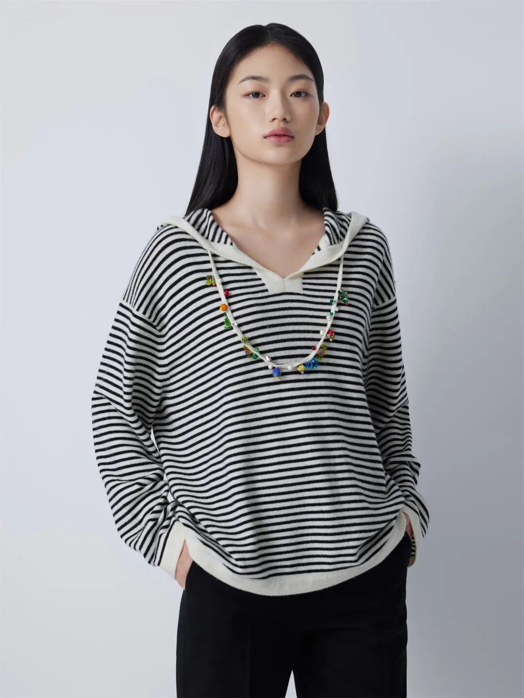 ▲山羊绒带帽套衫¥2990,折后价¥2840