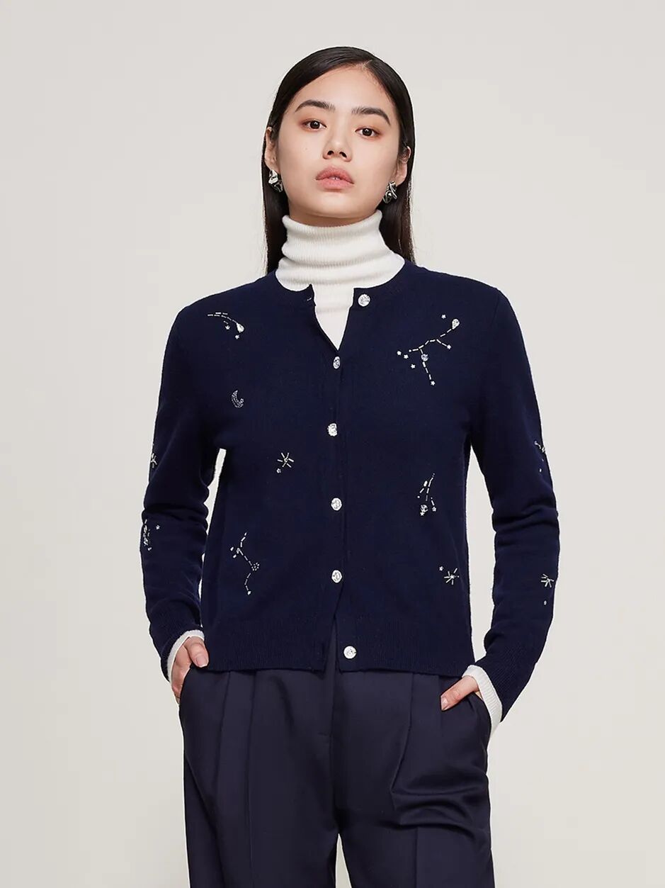于深邃夜色蓝之上缀饰精致水钻