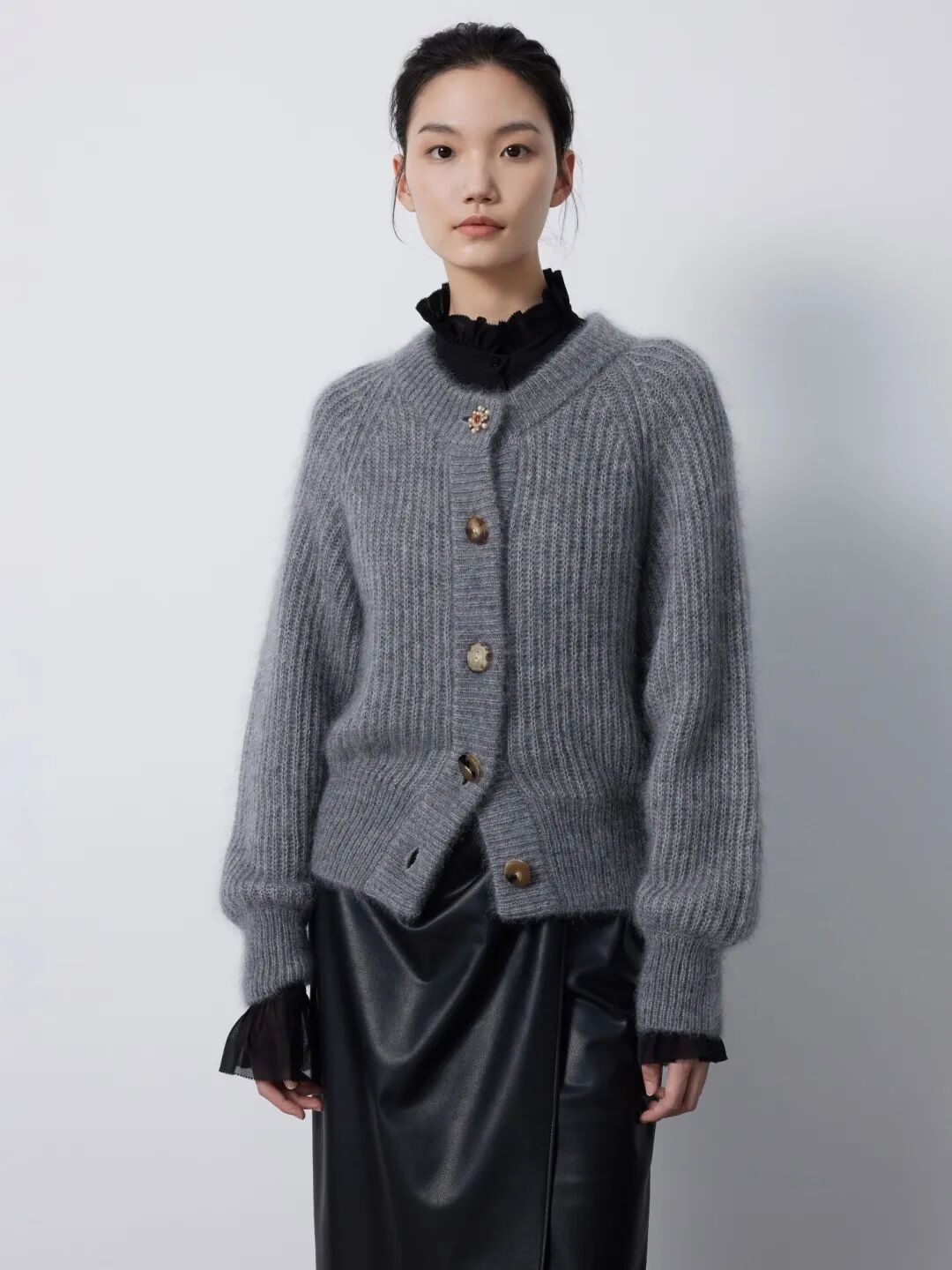 ▲马海毛圆领双畦开衫¥5490,折后价¥5215
