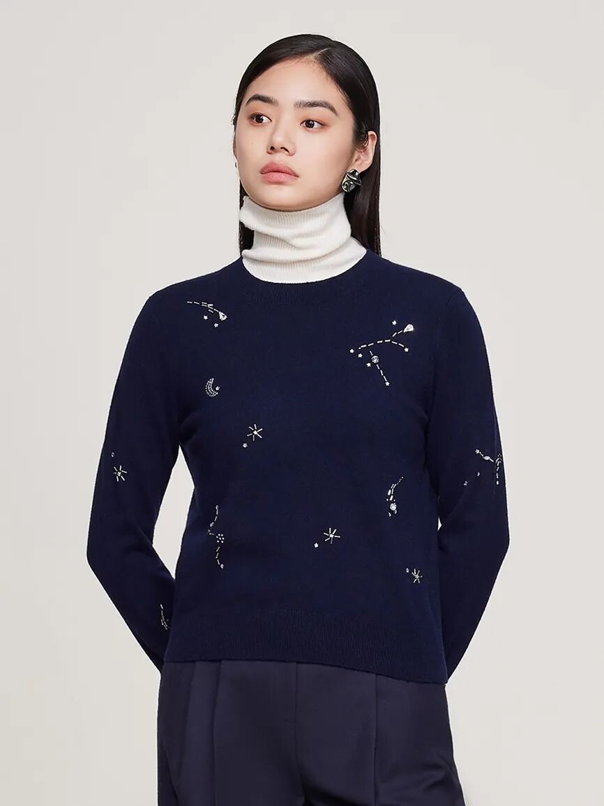 ▲山羊绒圆领装饰套衫 ¥3990,折后价¥3790