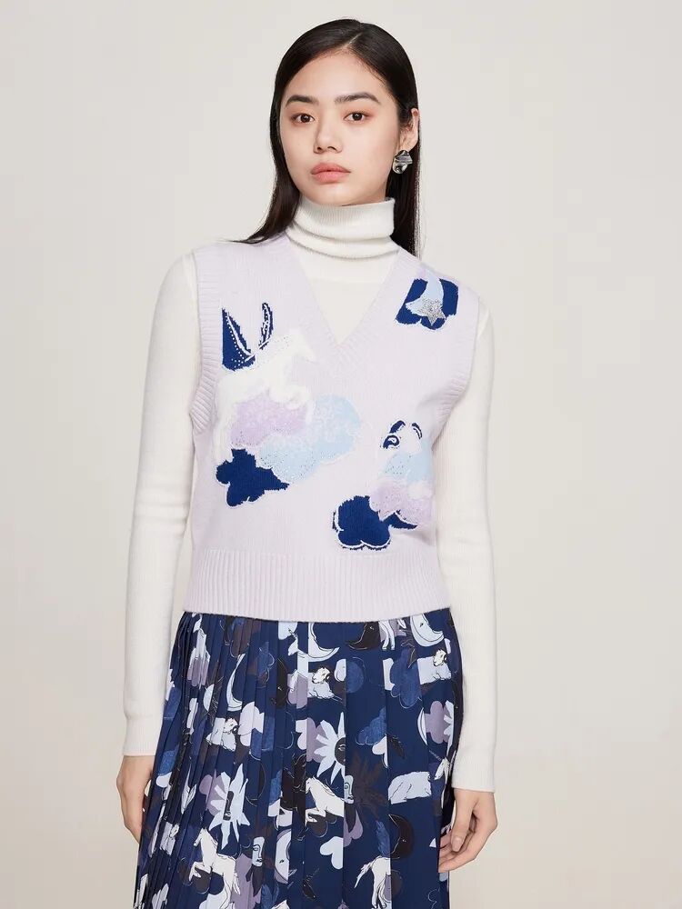 ▲V领装饰提花套衫¥3990,折后价¥3790