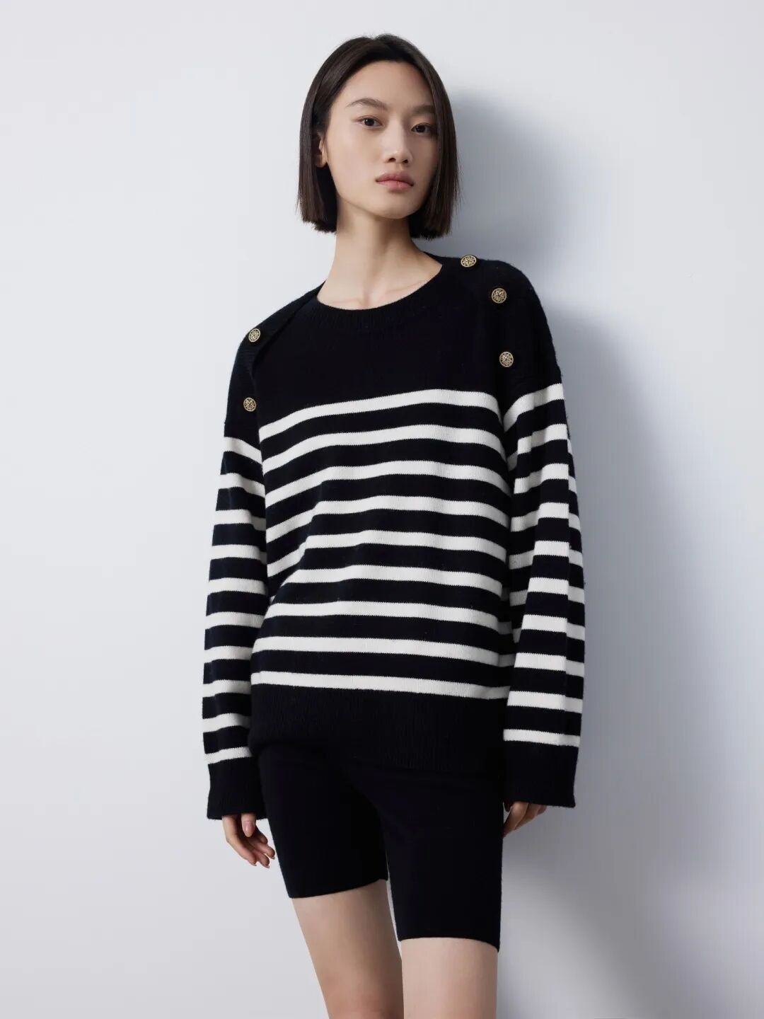 ▲条纹落肩袖羊绒套衫¥3990,折后价¥3790