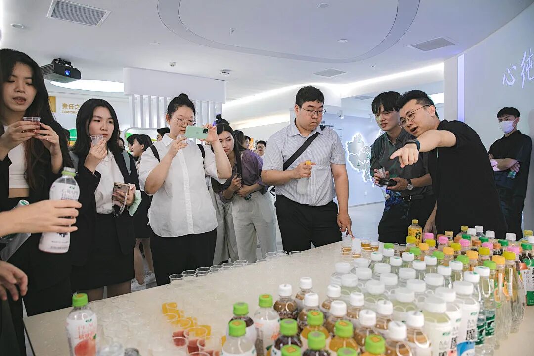 一瓶“怡宝”是如何被生产出来的?在怡宝的深圳厂区,讲师向青年们介绍了怡宝的发展历程和系列产品,并带大家参观了生产线。