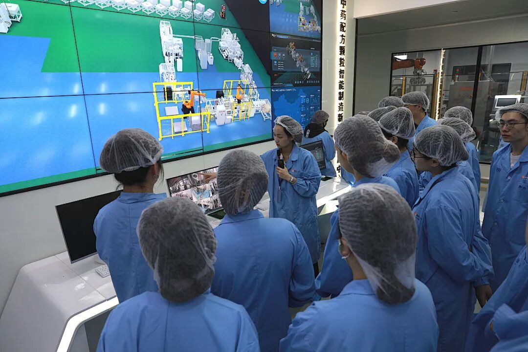 在华润三九观澜基地生产制造车间,青年们感受了智能制造带来的现代化生产。中药配方颗粒是如何调配的?三九的讲师为大家进行了详细讲述和演示。