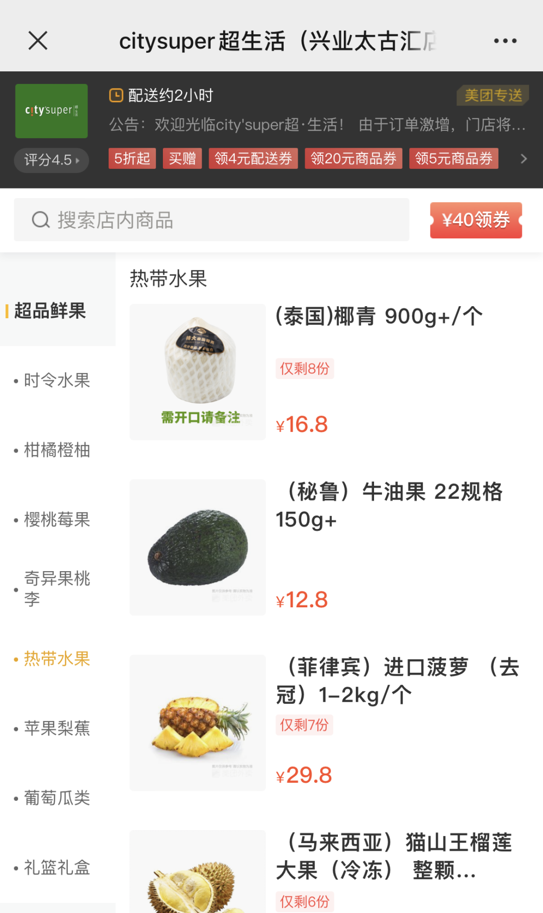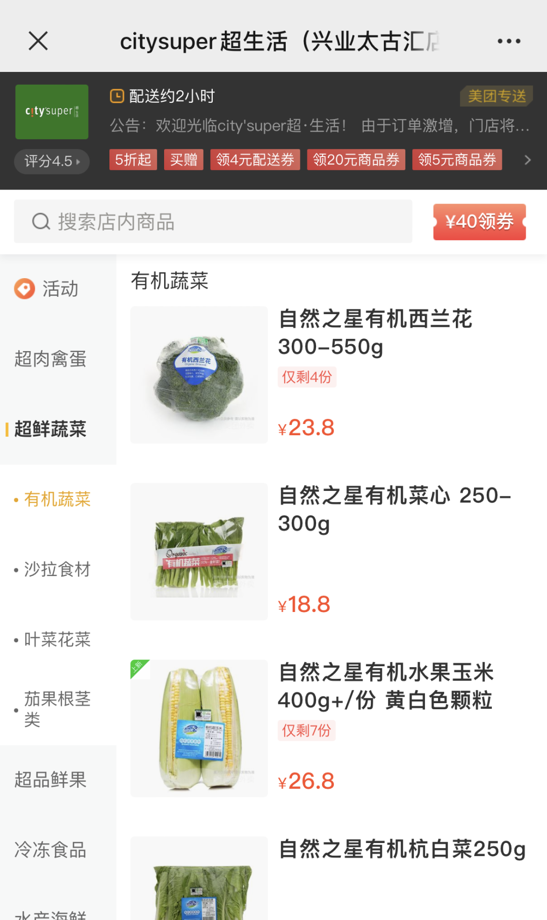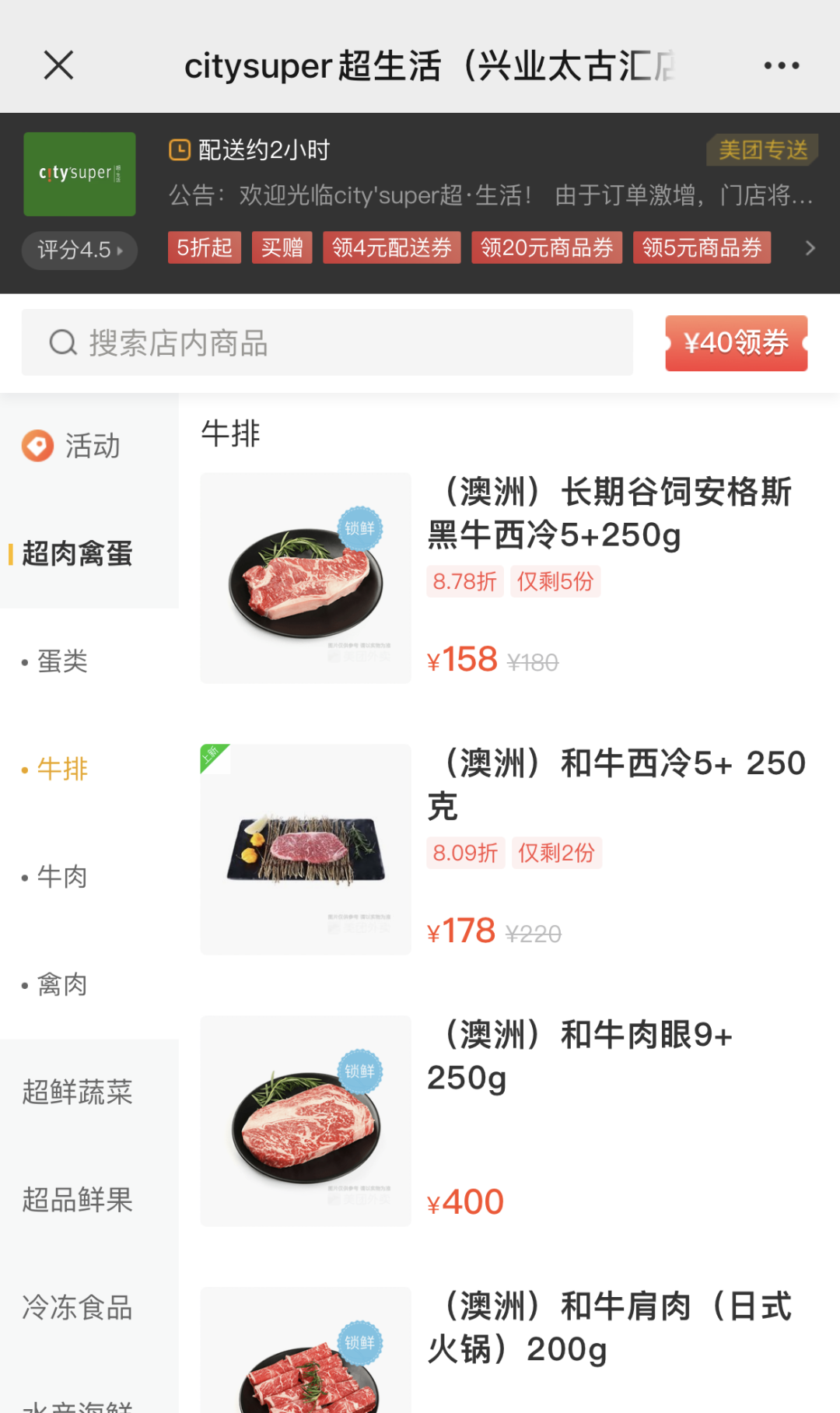 超肉禽蛋、超鲜蔬菜、超品鲜果、水产海鲜