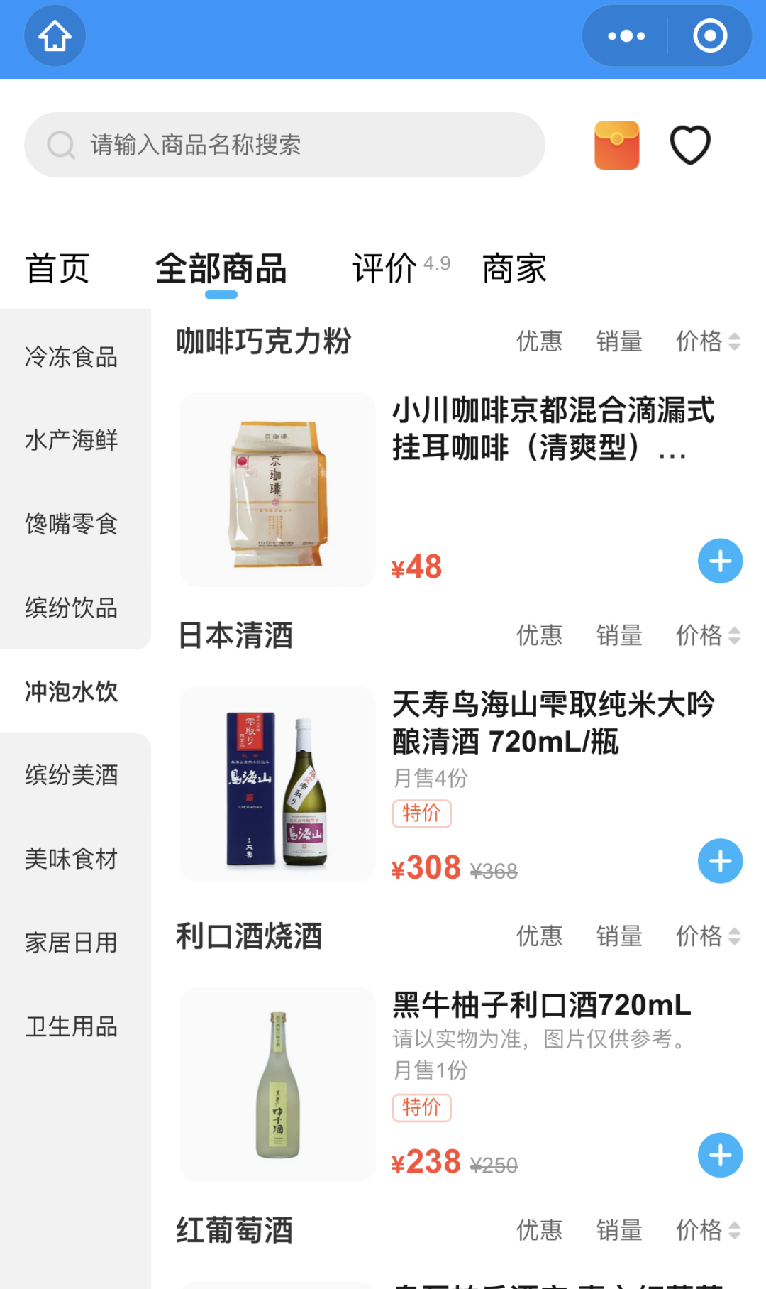 馋嘴零食、缤纷饮品、冲泡水饮、缤纷美酒