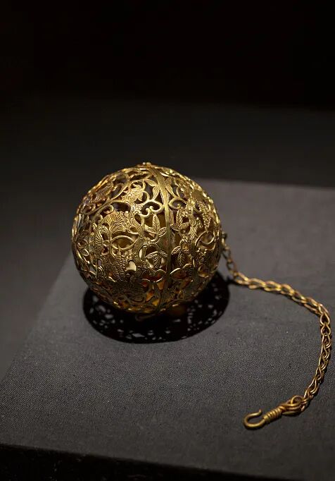 唐代镂空鎏金香囊:巧夺天工,耀眼夺目!