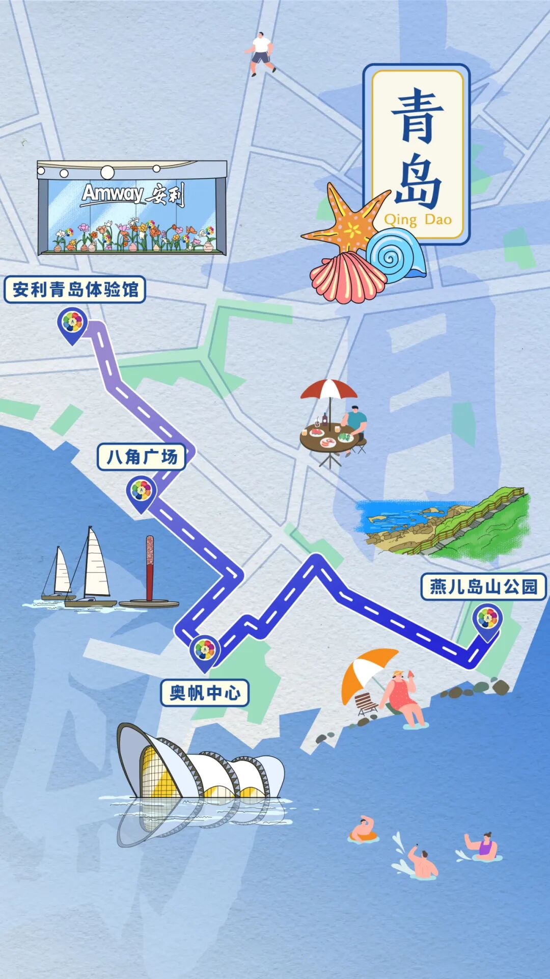 顺序:燕儿岛山公园→奥帆中心→八角广场→安利青岛体验馆