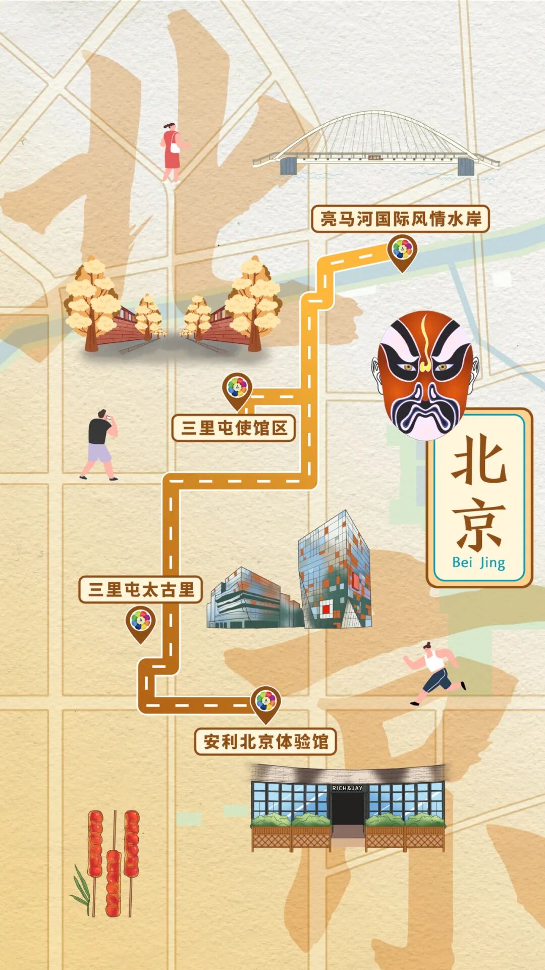 顺序:亮马河国际风情水岸→三里屯使馆区→三里屯太古里→安利北京体验馆