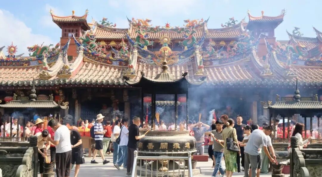 在欣赏这座拥有精美雕刻的道教庙宇时