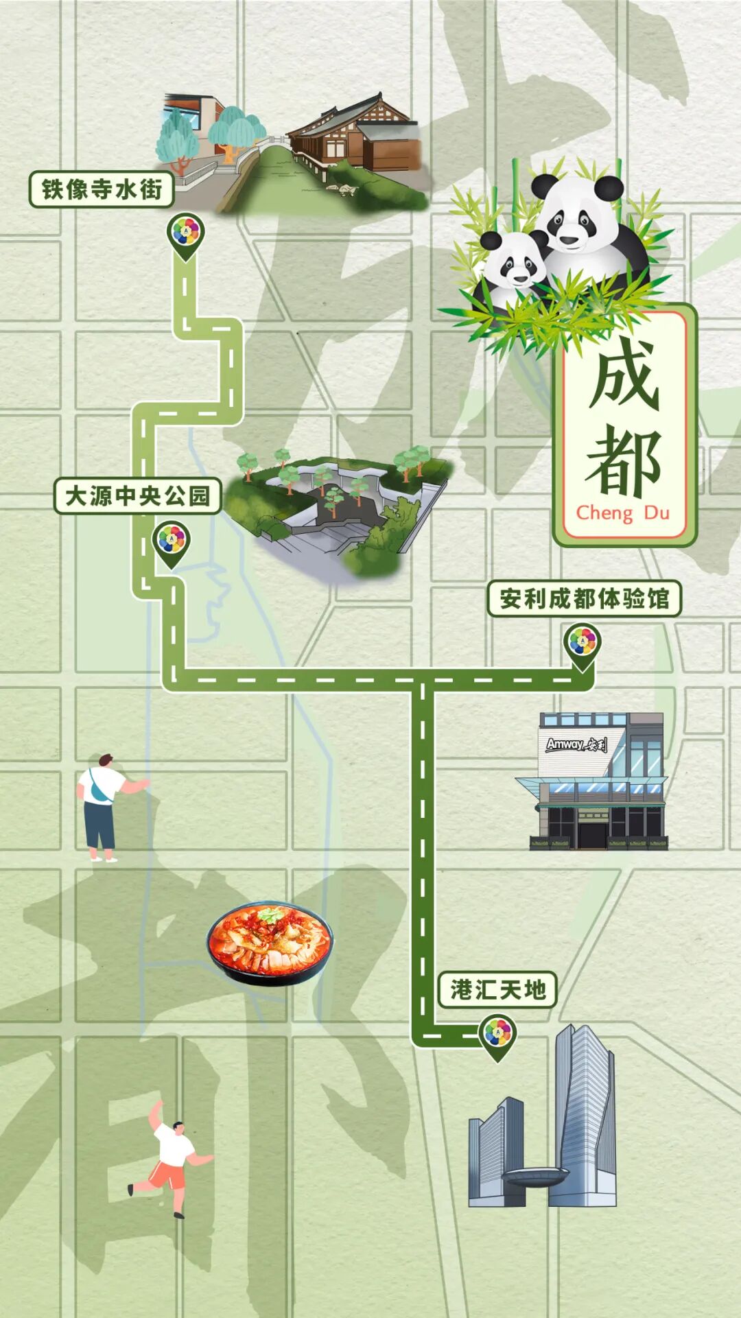 顺序:港汇天地→安利成都体验馆→大源中央公园→铁像寺水街