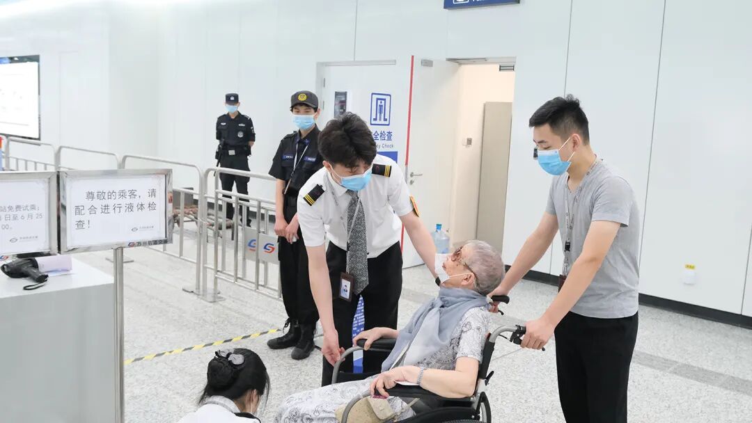 一路上,车站员工耐心且仔细地为她介绍5号线的新车站、新设备,老人都默默地看在眼里。直到分别的时候,老太太突然附在工作人员耳边轻轻说道:“谢谢你们今天陪我,真的麻烦你们了,我能试乘5号线,我感到特别开心!”