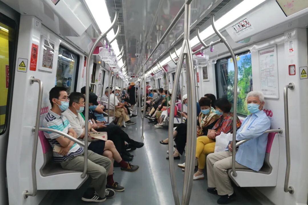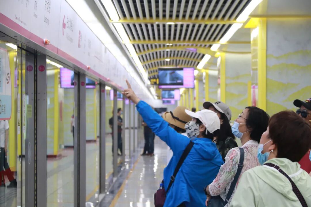 试乘期间小编发现很多乘客都是结伴出行,在一节列车上,我们也偶遇了一个迷你“旅行团”。组织人张先生告诉小编,他们曾经是一起打拼的同事,退休以后经常组织一起出游。以前交通不太方便,只能在家附近转转,5号线开通以后,可以组团去太湖吹吹风,去灵岩山爬爬山了!