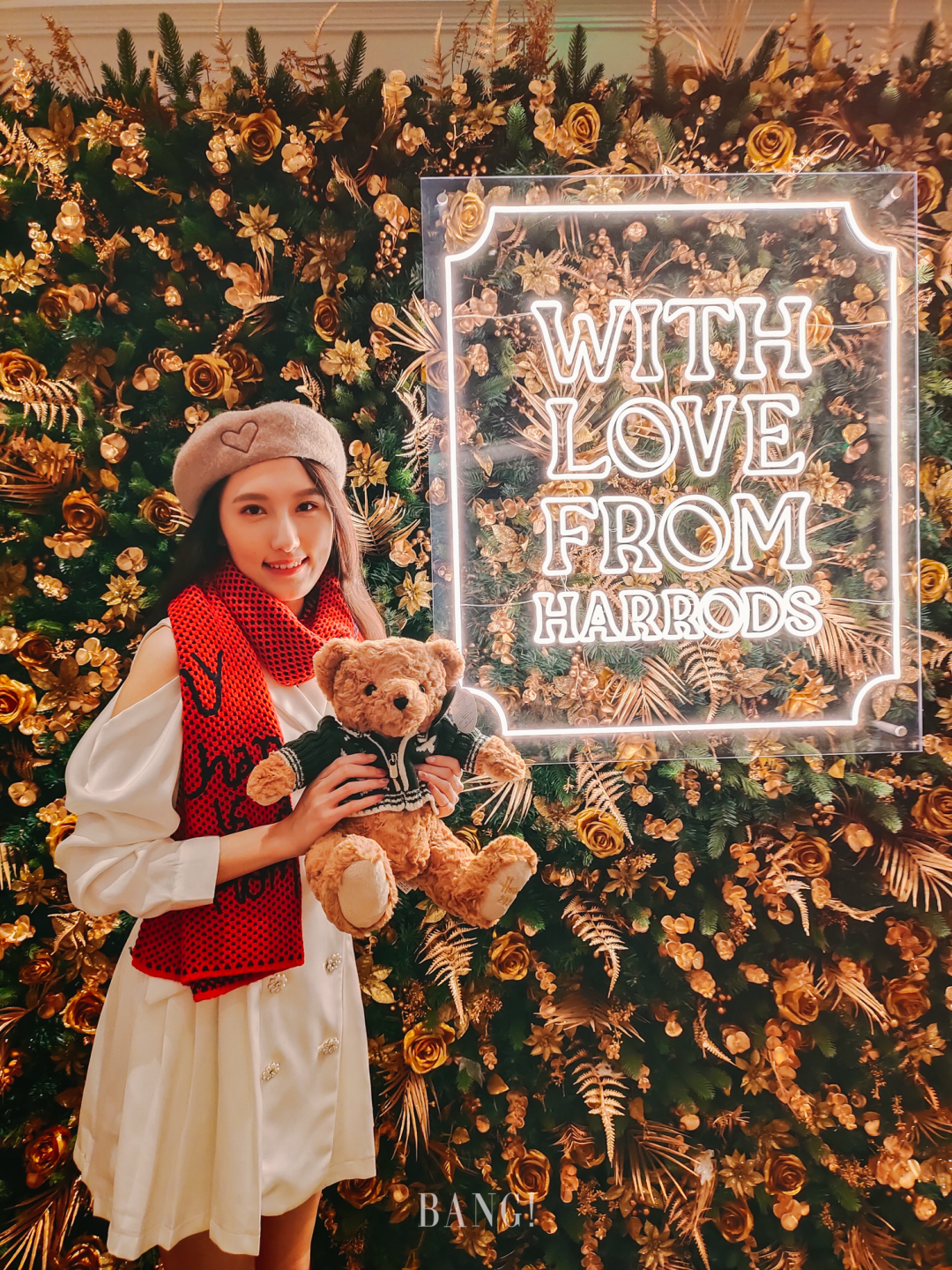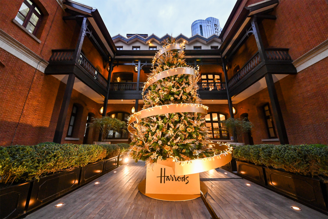 充满生机的绿色与华贵的金色交织出整面的花墙,浪漫又不失梦幻,在WITH LOVE FROM HARRODS的映衬下,更增添了一份爱与祝福。喜欢拍照的朋友们一定不能错过这个充满节日氛围的打卡点!