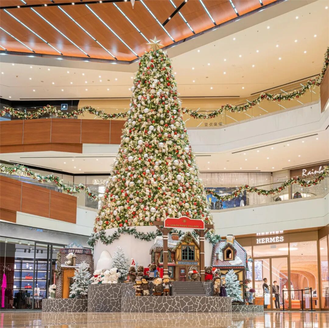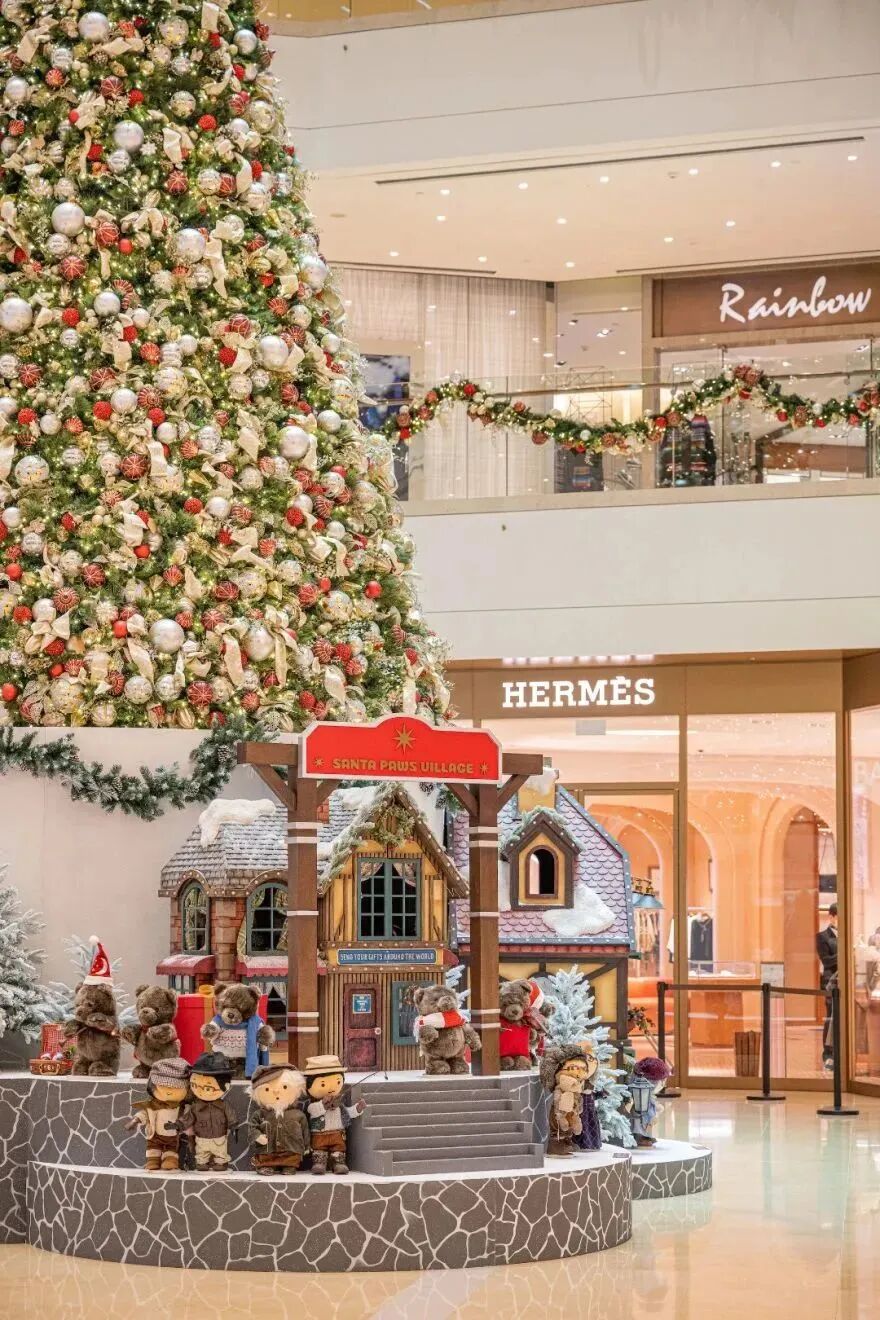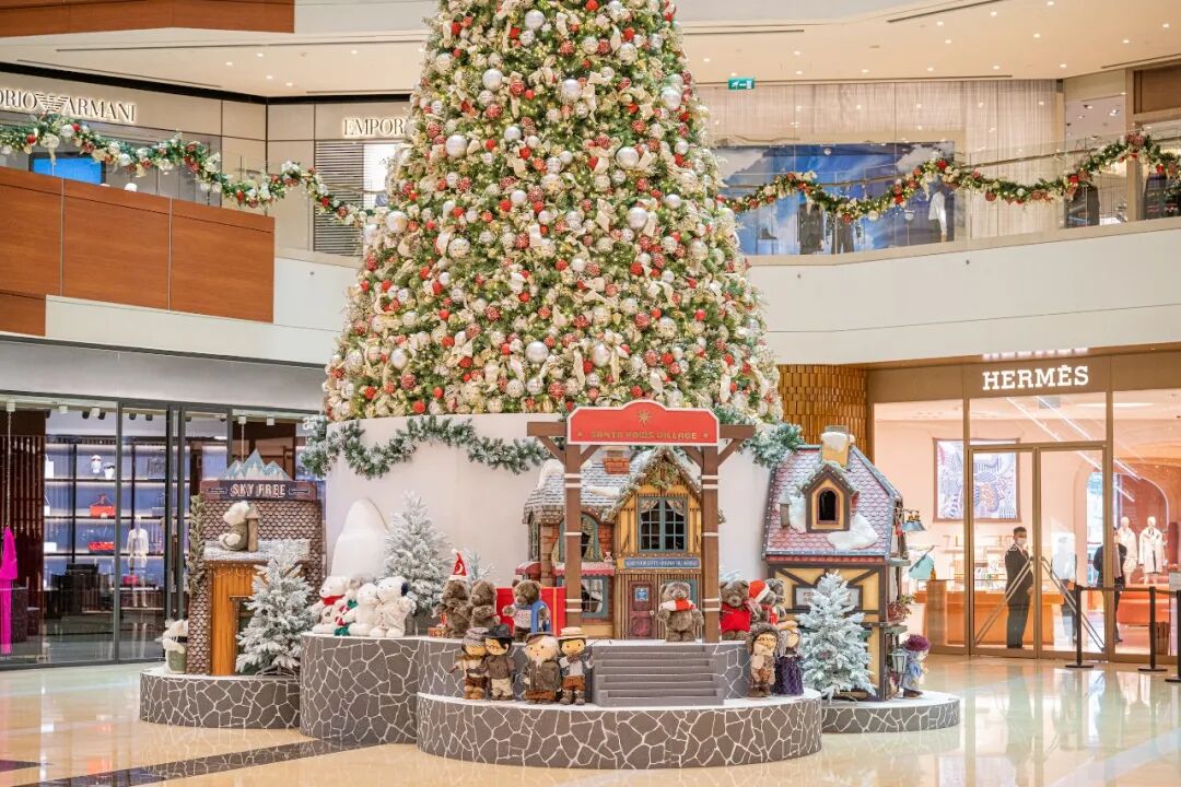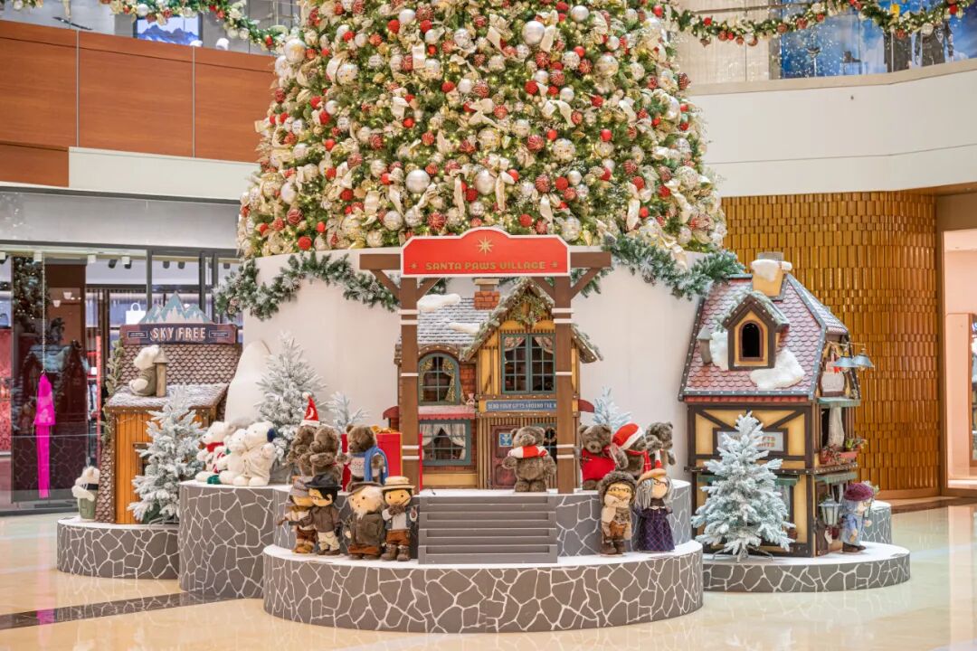 巨型圣诞树空降商场中庭,圣诞村驻扎在底部,小动物居民纷纷出来和大家打招呼,可爱又温馨。