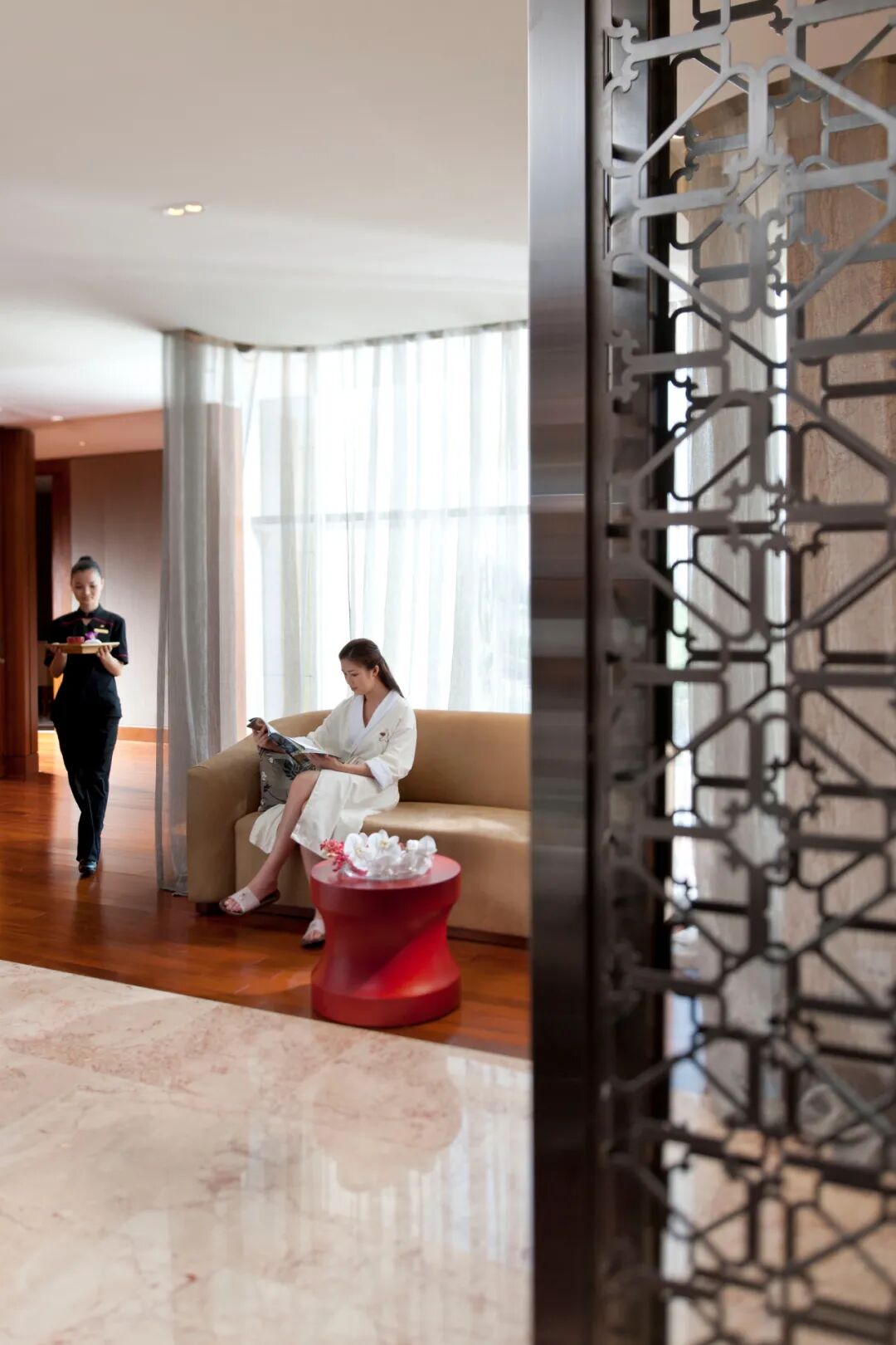 在澳门半岛上,澳门文华东方酒店是唯一一家不涉足博彩业的五星酒店,所以尽管身处繁华闹市,酒店内却十分静谧。
