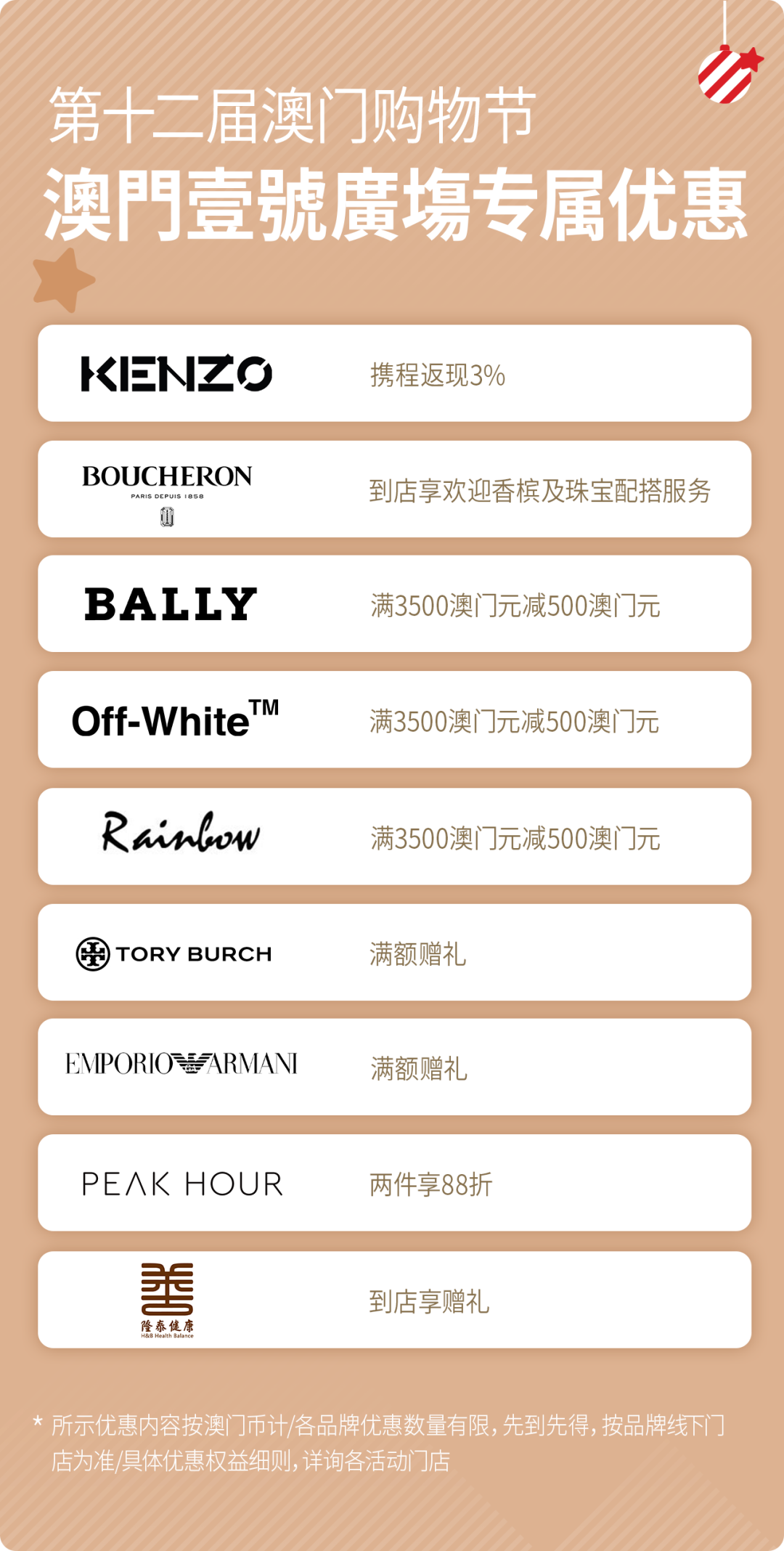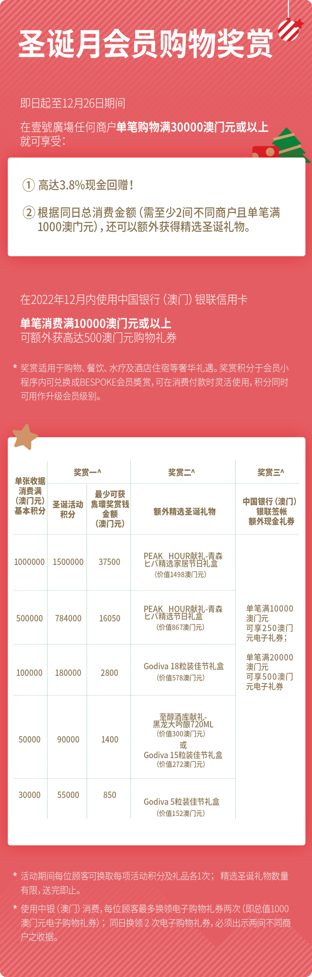 在澳門壹號廣塲,设置了圣诞月会员购物奖赏机制和商户圣诞礼遇,记得提前mark下来。