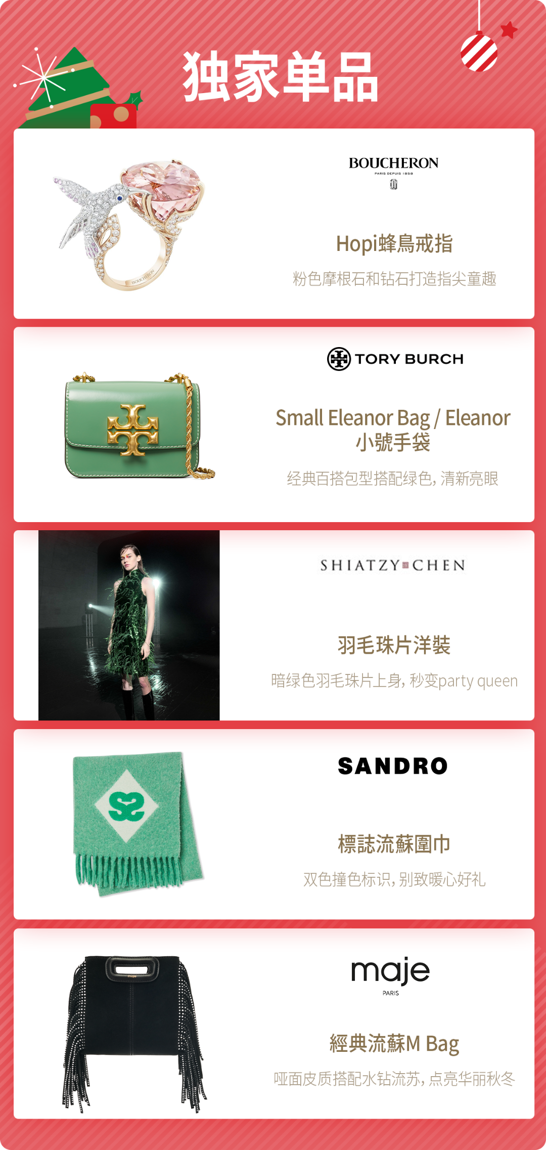 圣诞期间,这些品牌还超有诚意地拿出了独家单品、准备了圣诞好礼,如果想拥有不易撞款的单品,或还没给亲友准备圣诞礼物,一定不能错过!