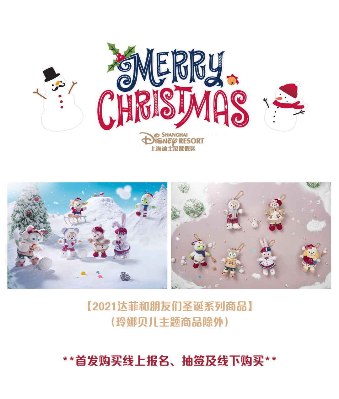 由于疫情防控的需求,我们推迟了【2021达菲和朋友们圣诞系列商品】原本的发售计划(已另行通过提前预约进行发售的玲娜贝儿主题商品除外)。我们由衷地感谢大家在这段时间的耐心,以及对我们商品的持续热爱。