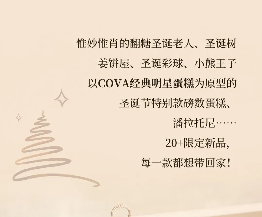 圣诞季将至,COVA 的圣诞气息早已满溢。藏满礼物的圣诞橱窗、随处可见的圣诞树、墙上的圣诞花环……细节满分,圣诞仪式感拉满!