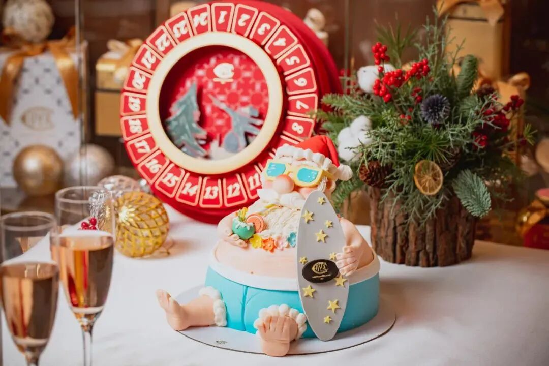 冲浪圣诞老人沙架蛋糕
