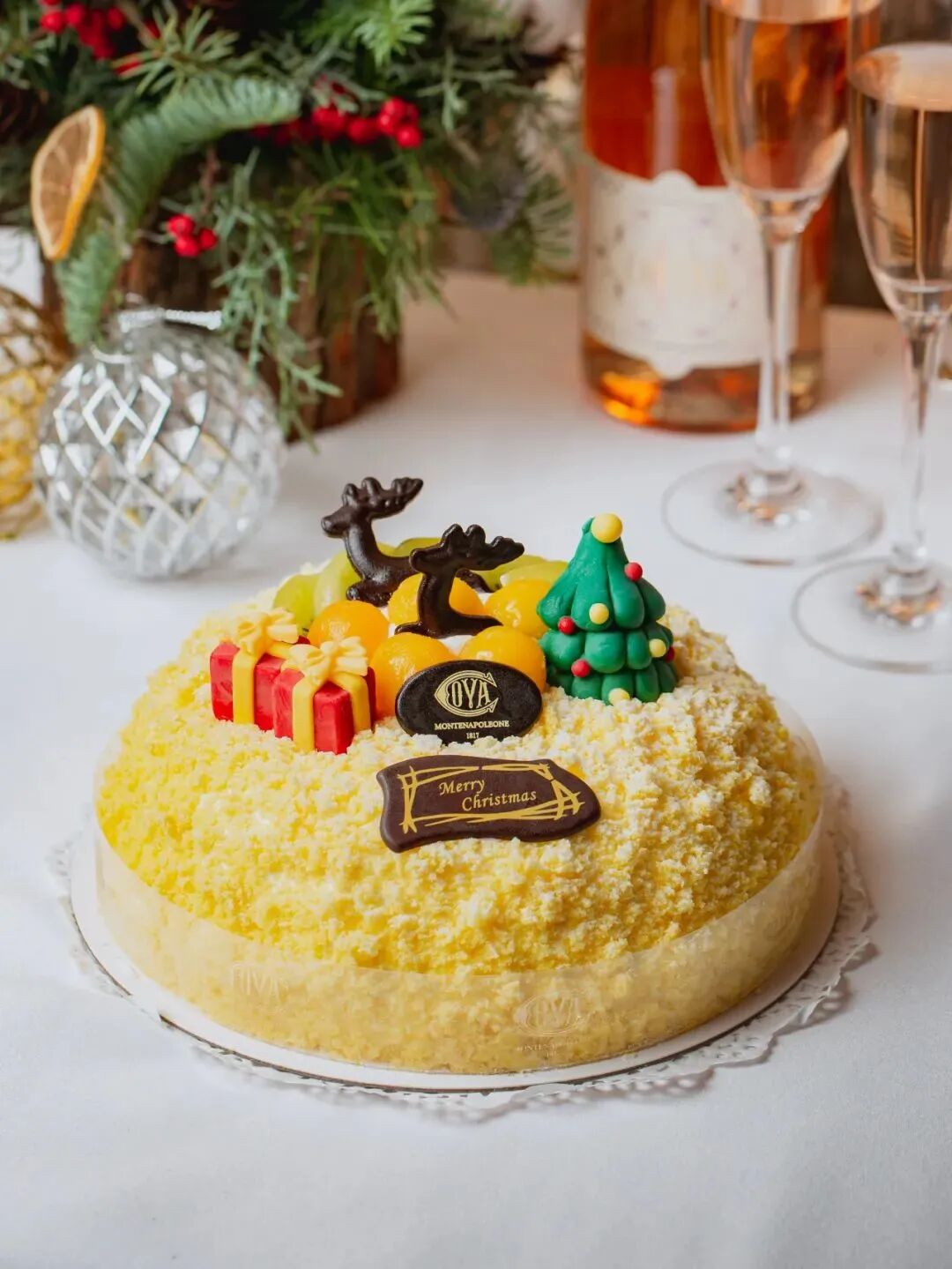 没人能拒绝经典的芒果鲜奶油蛋糕!圣诞款在平时的基础之上装饰了麋鹿、礼盒和圣诞树,宛如小小童话世界。