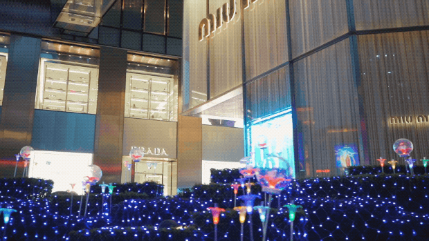 当夜幕降临,iapm还在淮海路沿街花园,打造了一片如梦似幻的浪漫璃光花海!