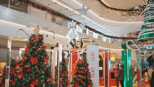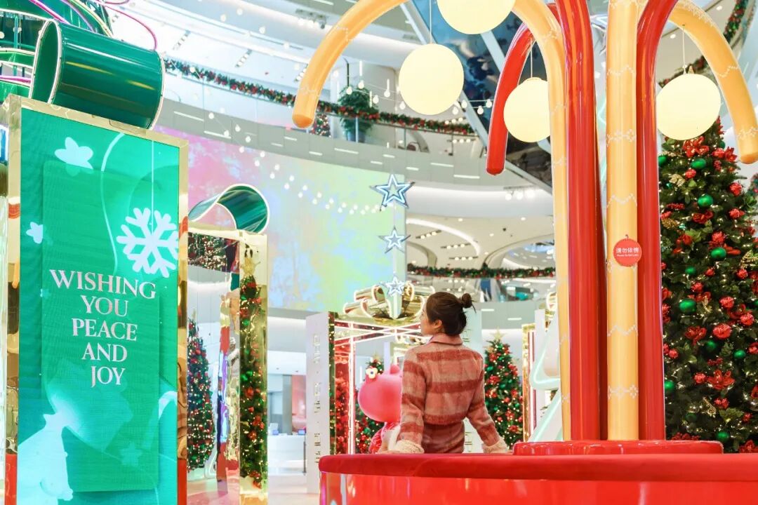 转而响起的欢快圣诞音乐,伴随着星愿圣诞树LED屏幕上的节日祝福和大家许下的愿望,为你带来年末的美好瞬间。