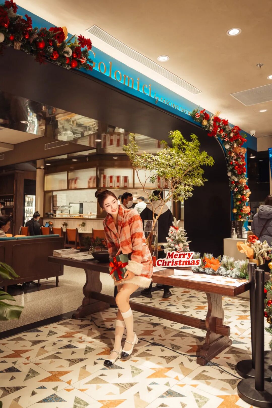 步入其中,整个空间以摩登自然质感打造温暖悠闲的用餐,专为节日布置的梦幻圣诞树和氛围感装饰,更是出片率十足。
