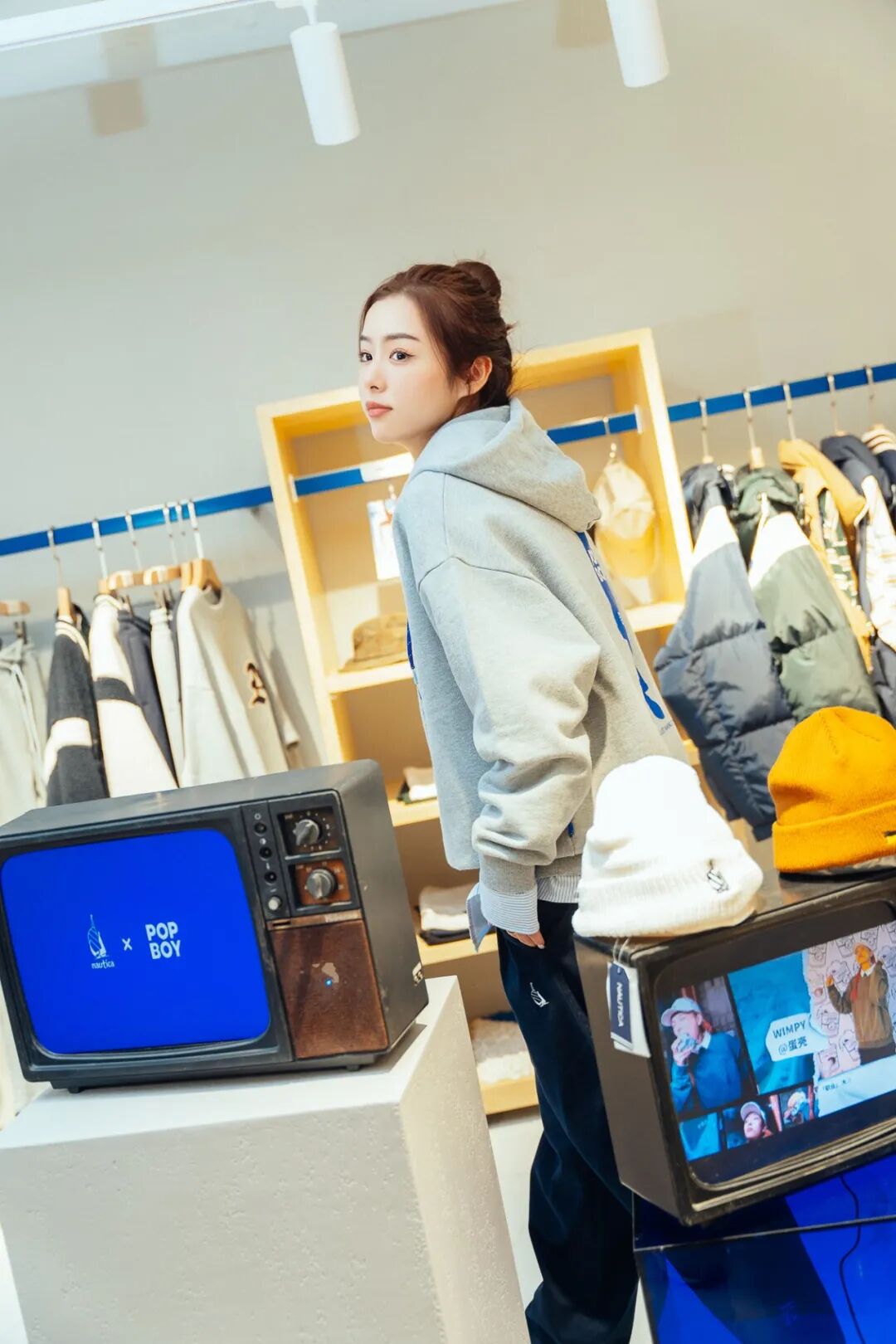 主推的POPBOY联名款系列系列,内搭一件条纹衬衫,舒适自在的同时又不乏穿搭感,配上蓝色工装裤,妥妥拿捏时下流行的City Boy风!