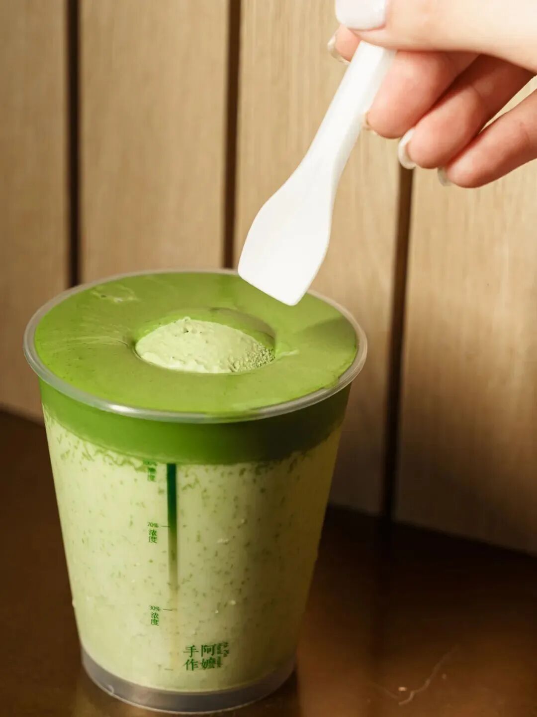 经典升级回归的超浓·抹茶,第一口先吃超浓抹茶雪糕,然后细细品尝有机绿茶水牛鲜乳茶和超浓抹茶酱带来的混合滋味,清新而醇厚。