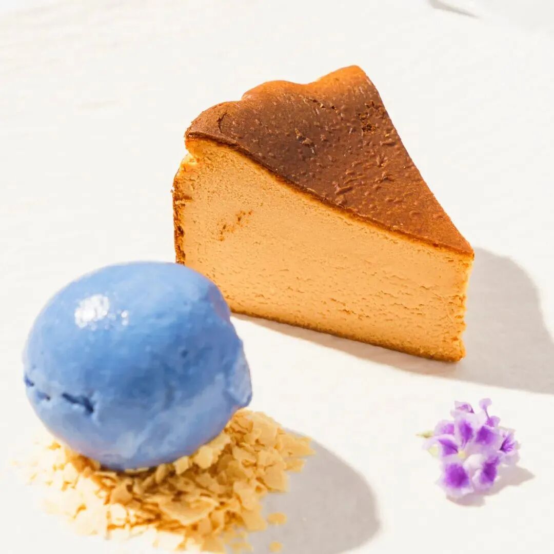 吃惯了原味巴斯克,不妨试试特别的泰茶口味,清莱湾将传统重乳酪改良至轻乳酪,并加入熬煮了2小时的泰茶汤底,口口细腻醇香,搭配的蝶豆花冰淇淋更是清莱当地的特色哦!