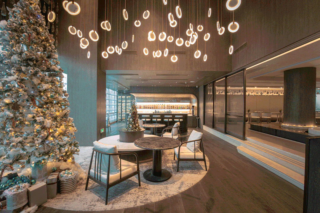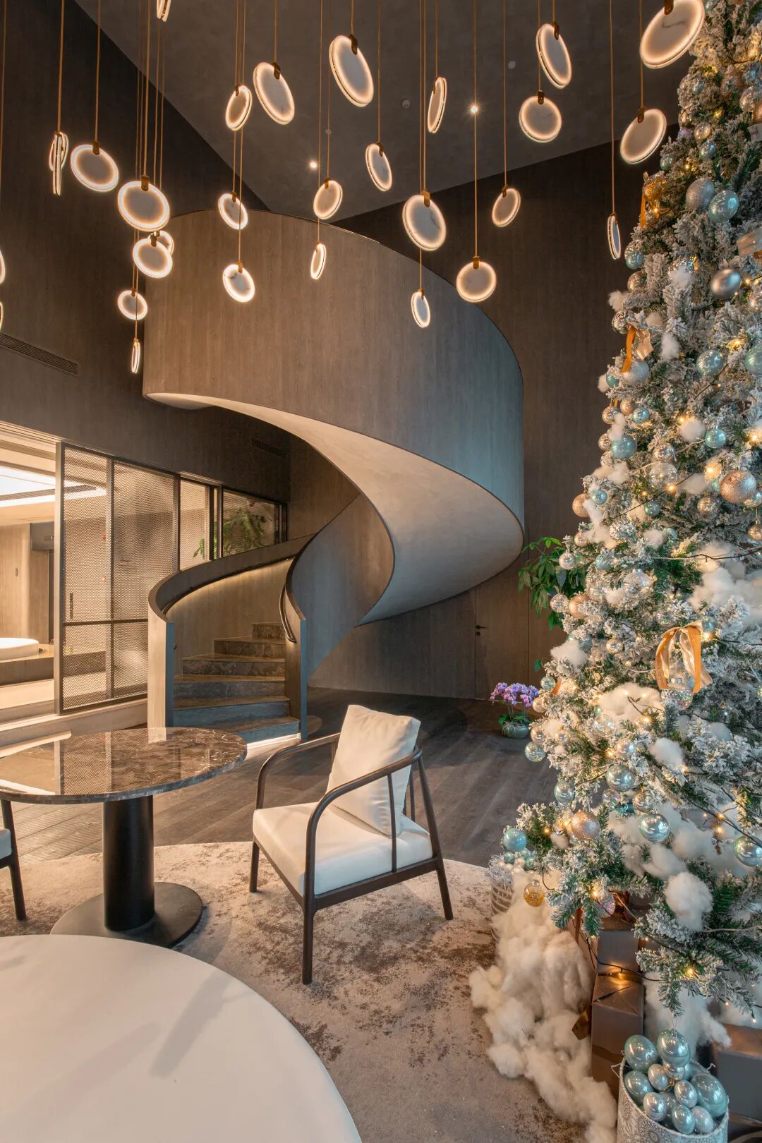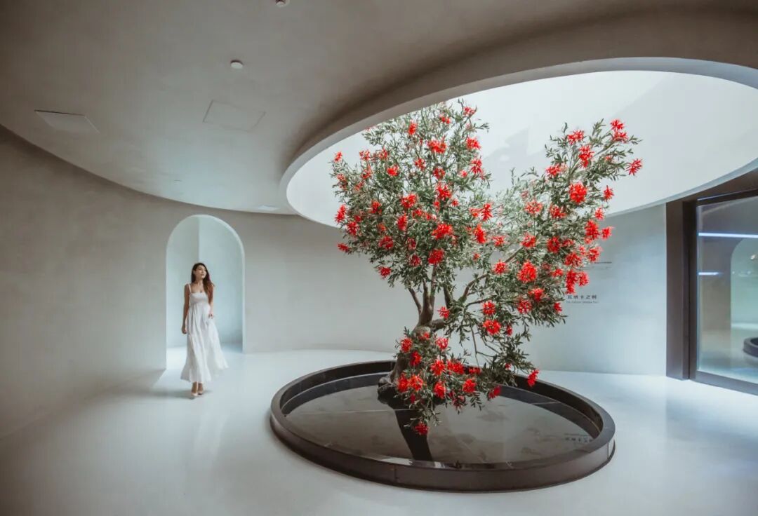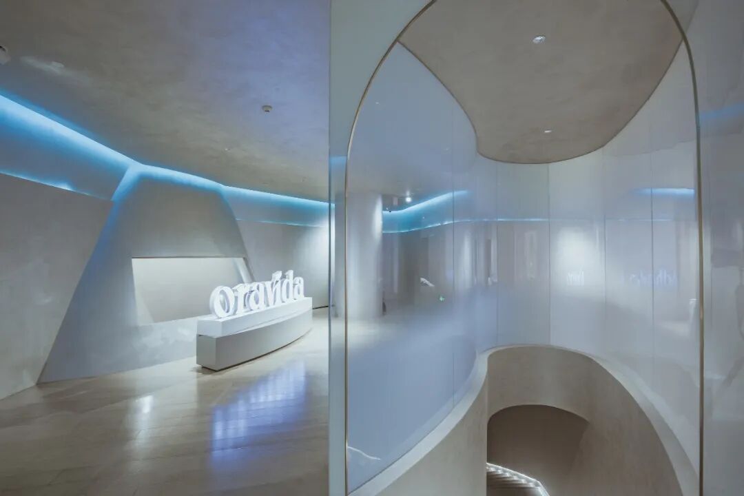 位于Oravida兰维乐品牌中心入门处的瓦纳卡湖同款孤独之树,1比1还原该树的曼妙形态,置身于挑空设计的极简空间之中,充满意境色彩。