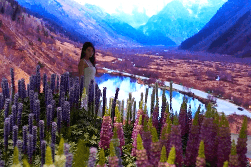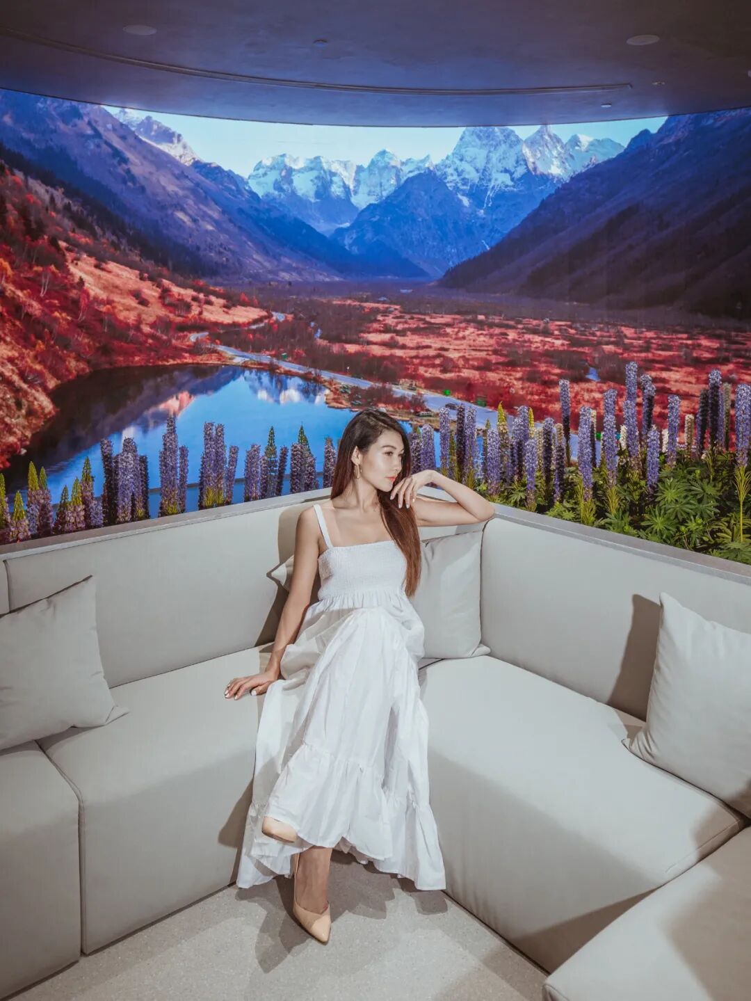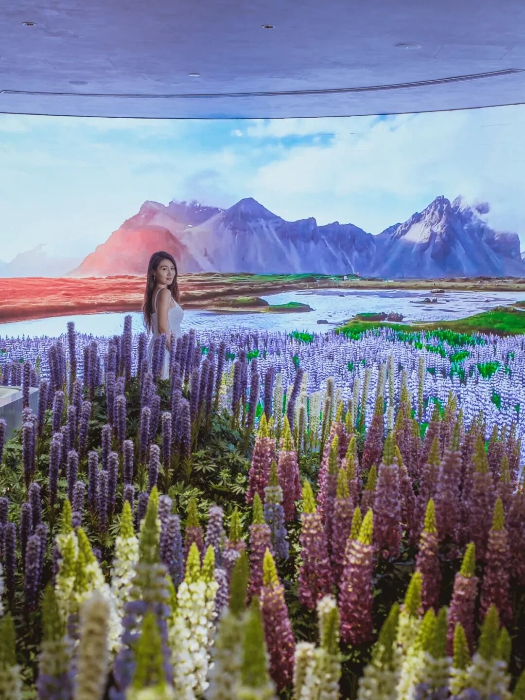 按照实景打造的鲁冰花海与180°环绕大屏的视觉融入,交织出整片一望无际的花海景像,一瞬间让人产生跳跃至山林野间的错觉。