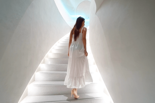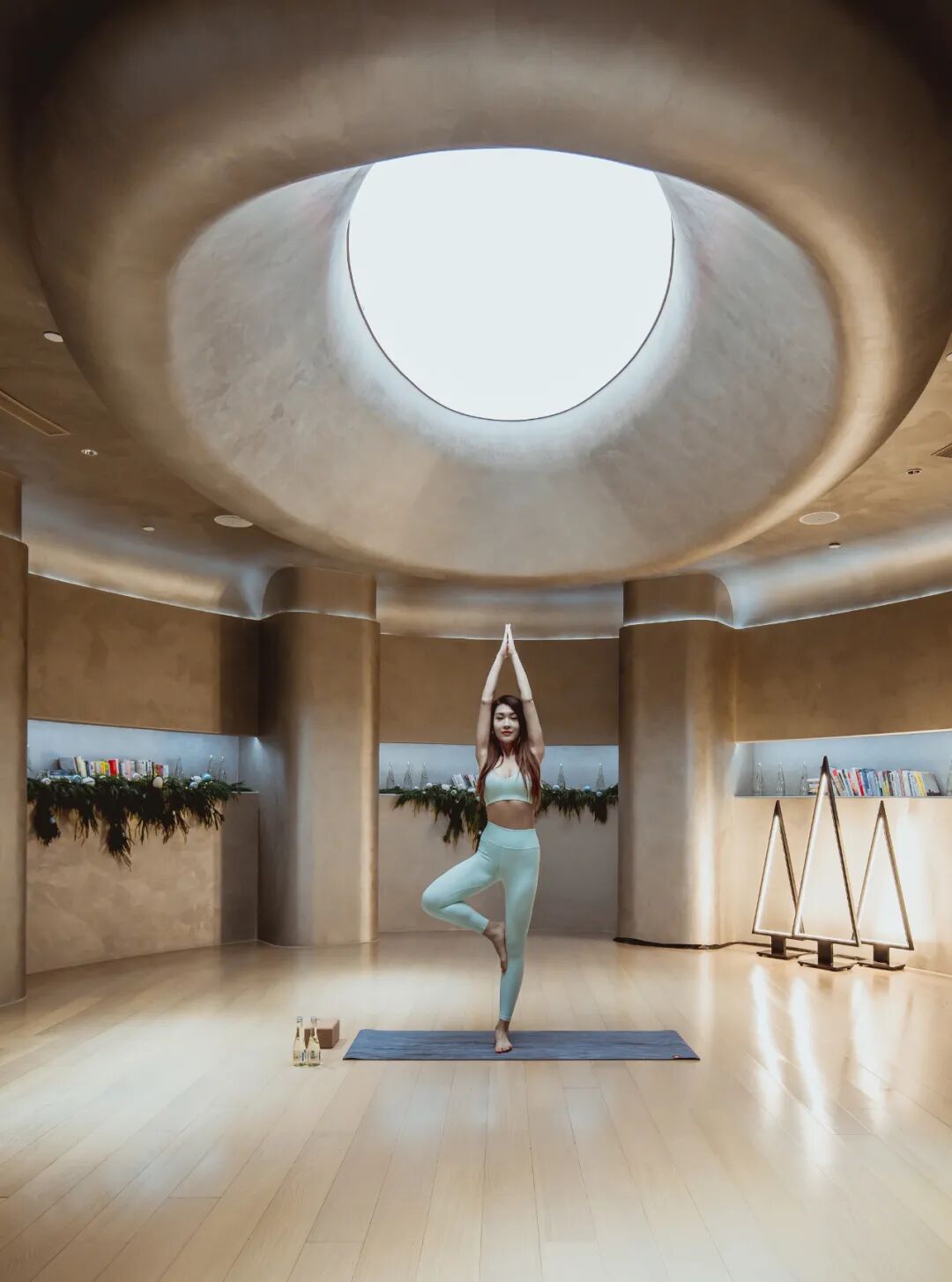 尽情放松,释放自我的主旨贯穿二楼整个空间,因此这里还打造了瑜伽冥想的专属空间。