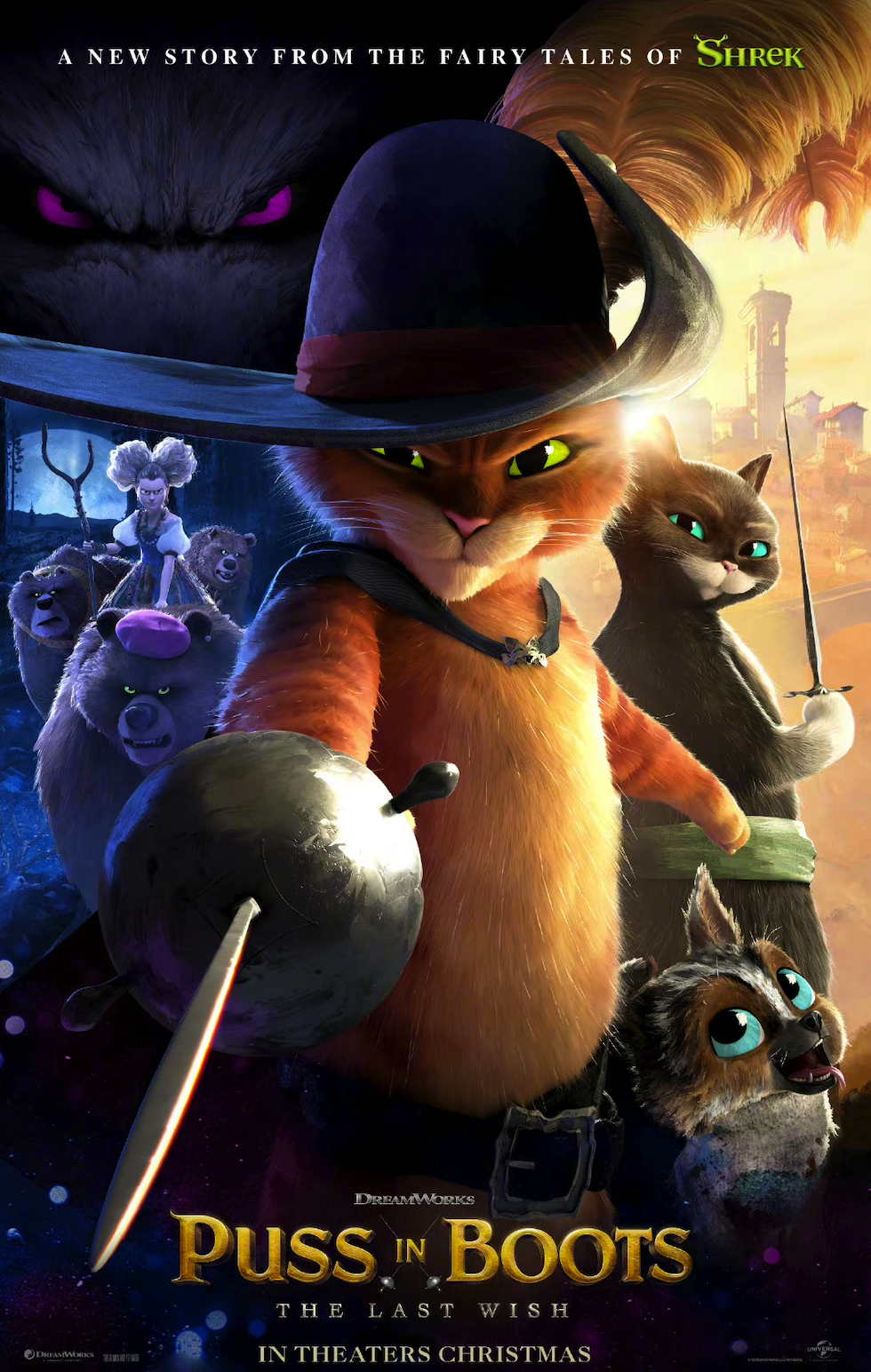 在不知不觉中挥霍掉了自己九条命中的八条的他为了找回失去的生命,即将踏上一段史诗般的旅程--进入黑森林寻找神话中的许愿星,许下“最后的愿望”。这次穿靴子的猫和老搭档兼“宿敌”软爪妞,还有新队友小狗佩罗将组成“友谊铁三角”,新老朋友齐聚首,全新高能冒险即将开启。