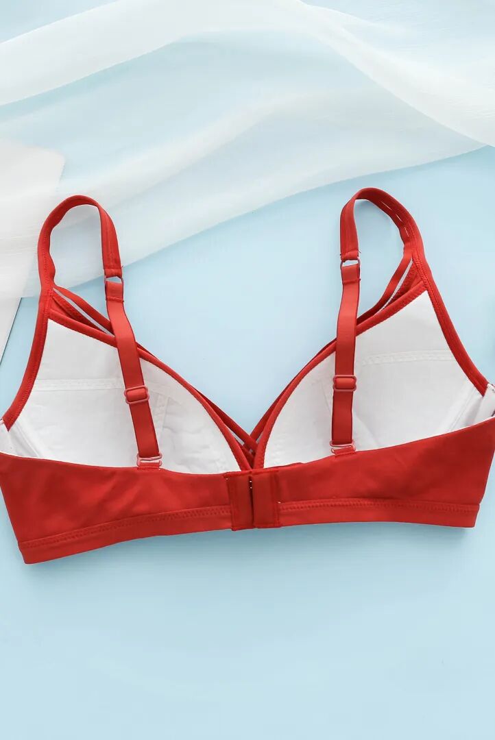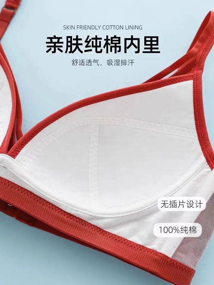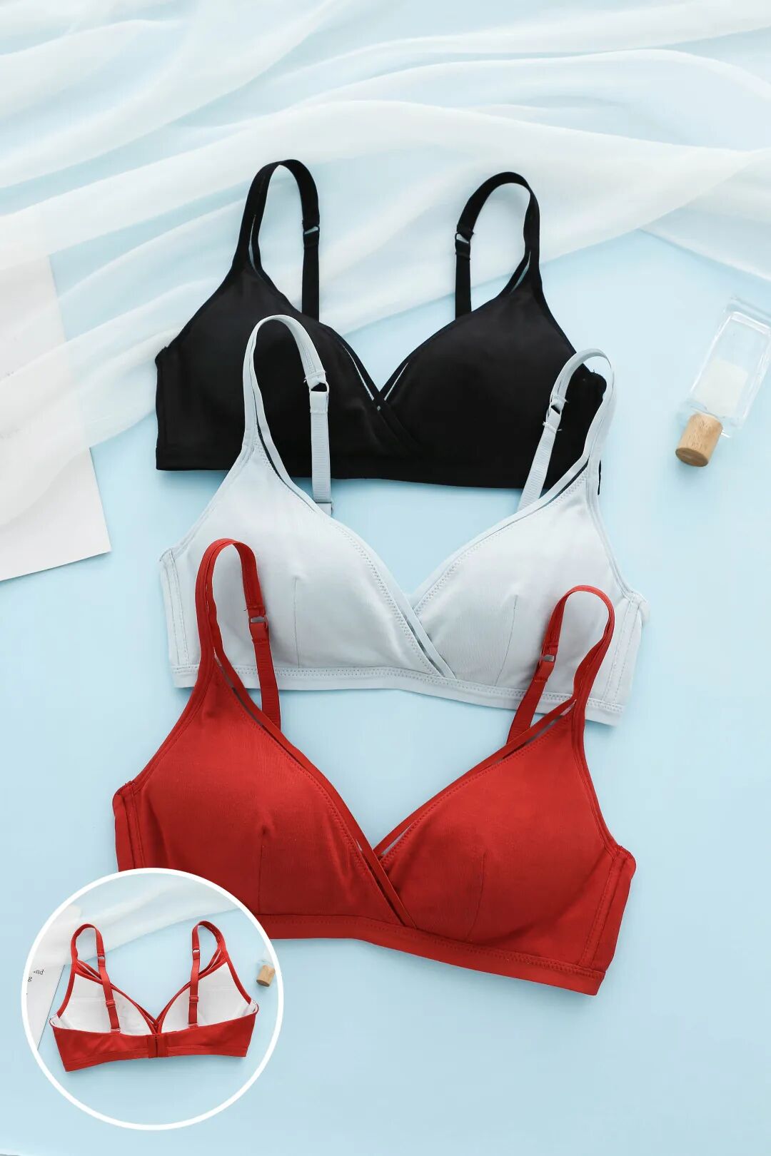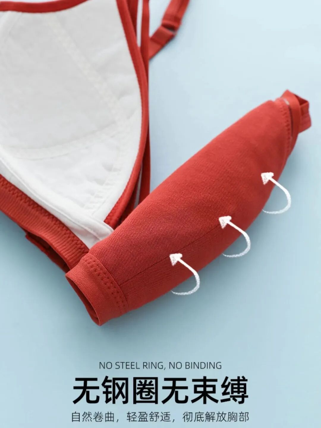 用色彩表达,不止经典黑白色,还有净水色与枫叶红,每种颜色都有其气质,让少女怦然心动。前中三角交叠,简洁柔软模杯,作为载体,包裹身体,覆盖,贴合,包容,俯身不走光,只管安心穿。镂空织带轻轻勾勒,无矫饰的线条感。
