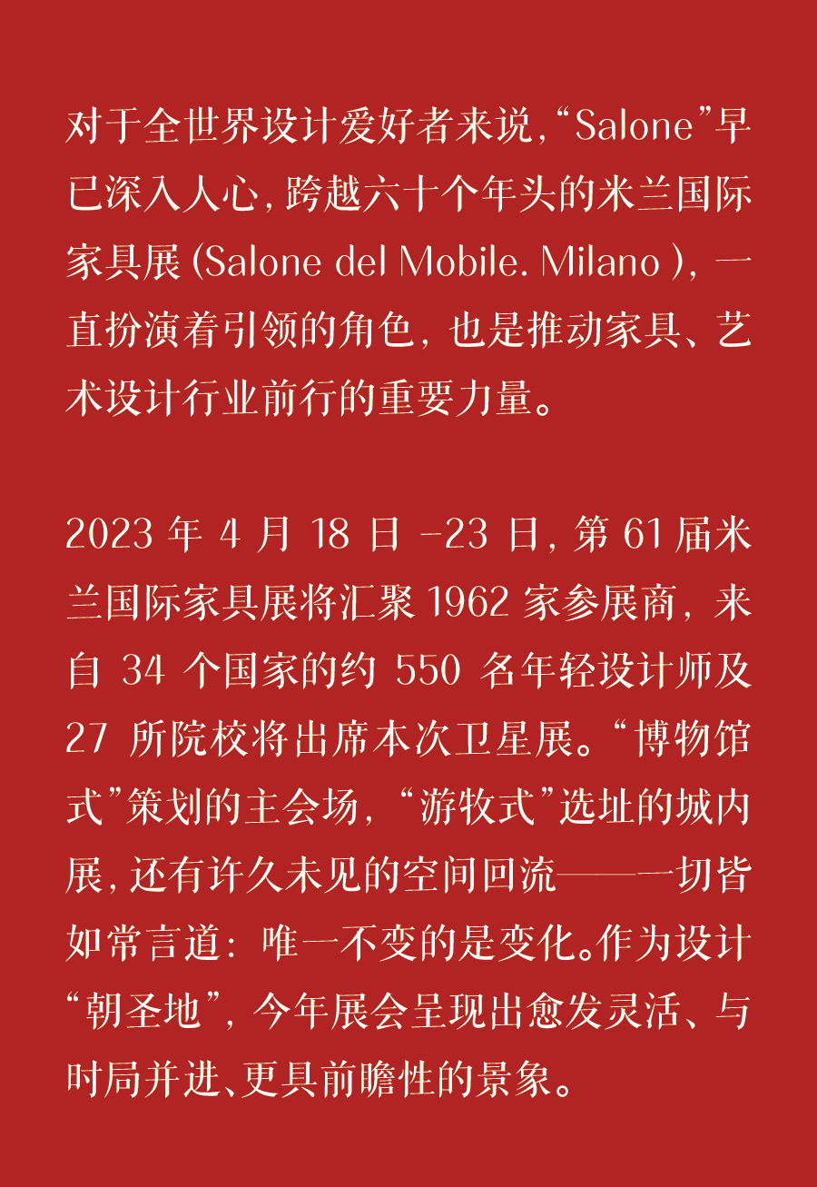 2023年的室内系列,将以摩登注脚,张弛先锋;多维拓新,延续建筑感的设计构想。展览将会是一条让人全身心投入的参观路径,阐释 Poliform 生活格调营造的永恒优雅氛围。