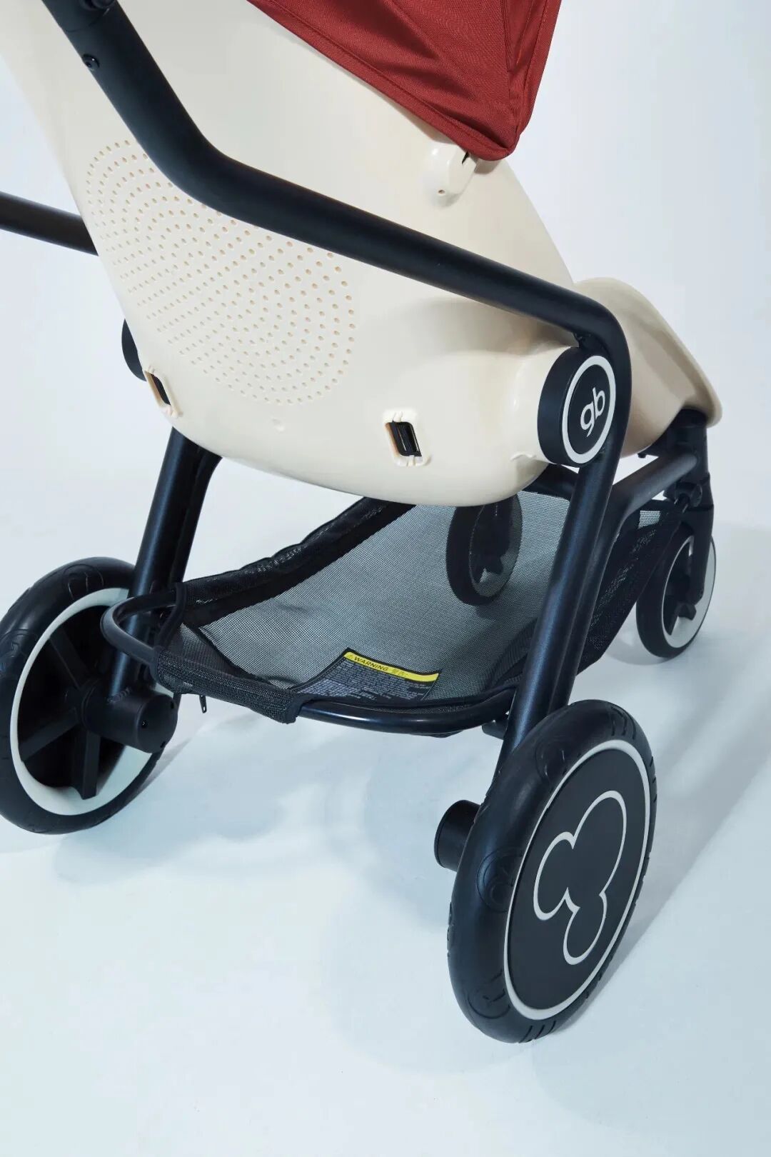 座椅下的置物篮方便储物,随时卸下随身物品,
