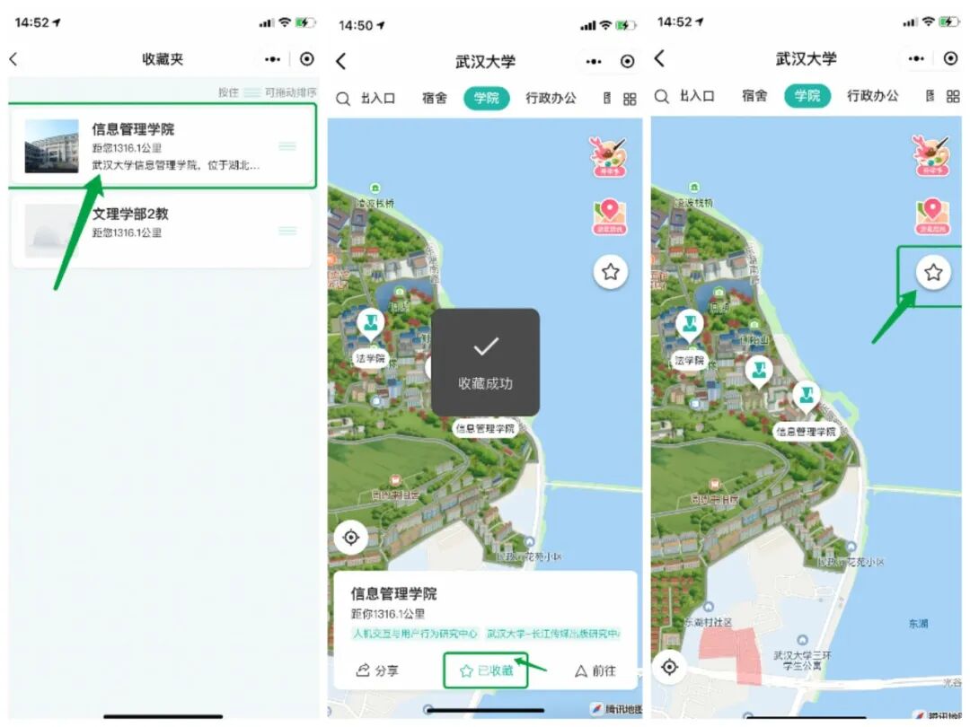 也可以通过收藏夹查看提前收藏好的地点,比如你的学院:
