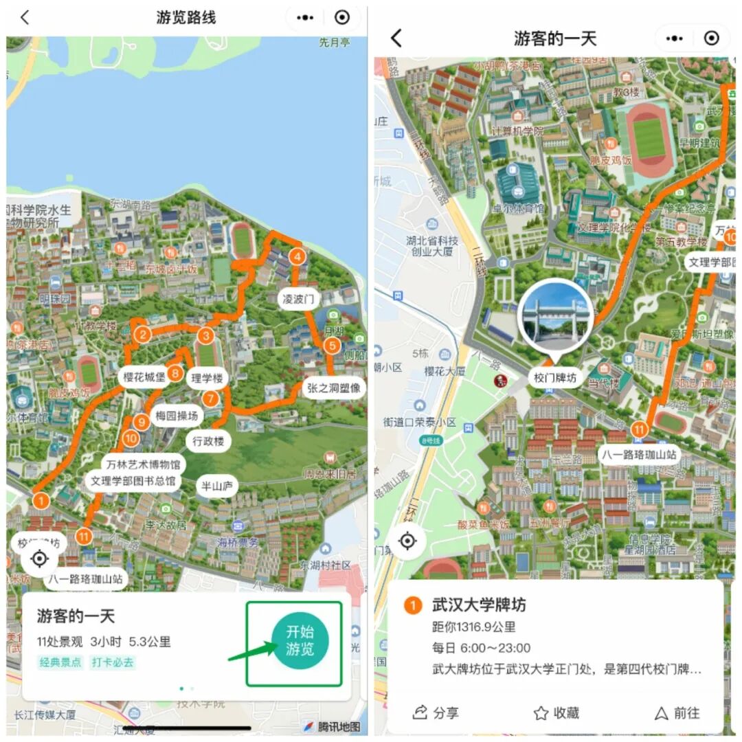 武汉大学信息中心联合腾讯智慧景区,开发了新版校园导览小程序,有了这款清爽无广告、免费又好用的校园导览,学校再大也找得到要去的地方啦!