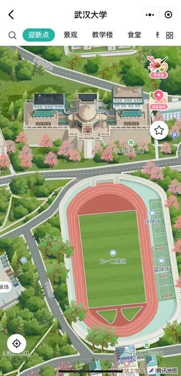 是不是云看武大、查看各个地方建筑景观的心愿都实现了呢!悄悄告诉你,这个手绘地图可不简单,用到了腾讯智慧景区的黑科技,和真实地图是完全贴合的,精准的位置加上手绘的建筑,再也不用担心找错地方啦!